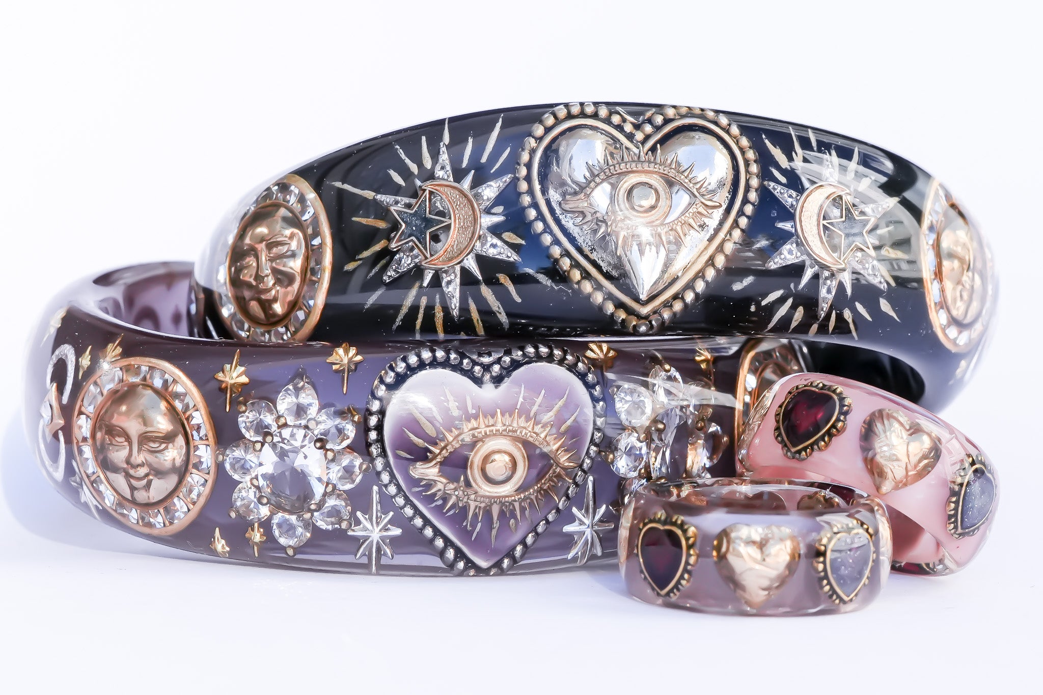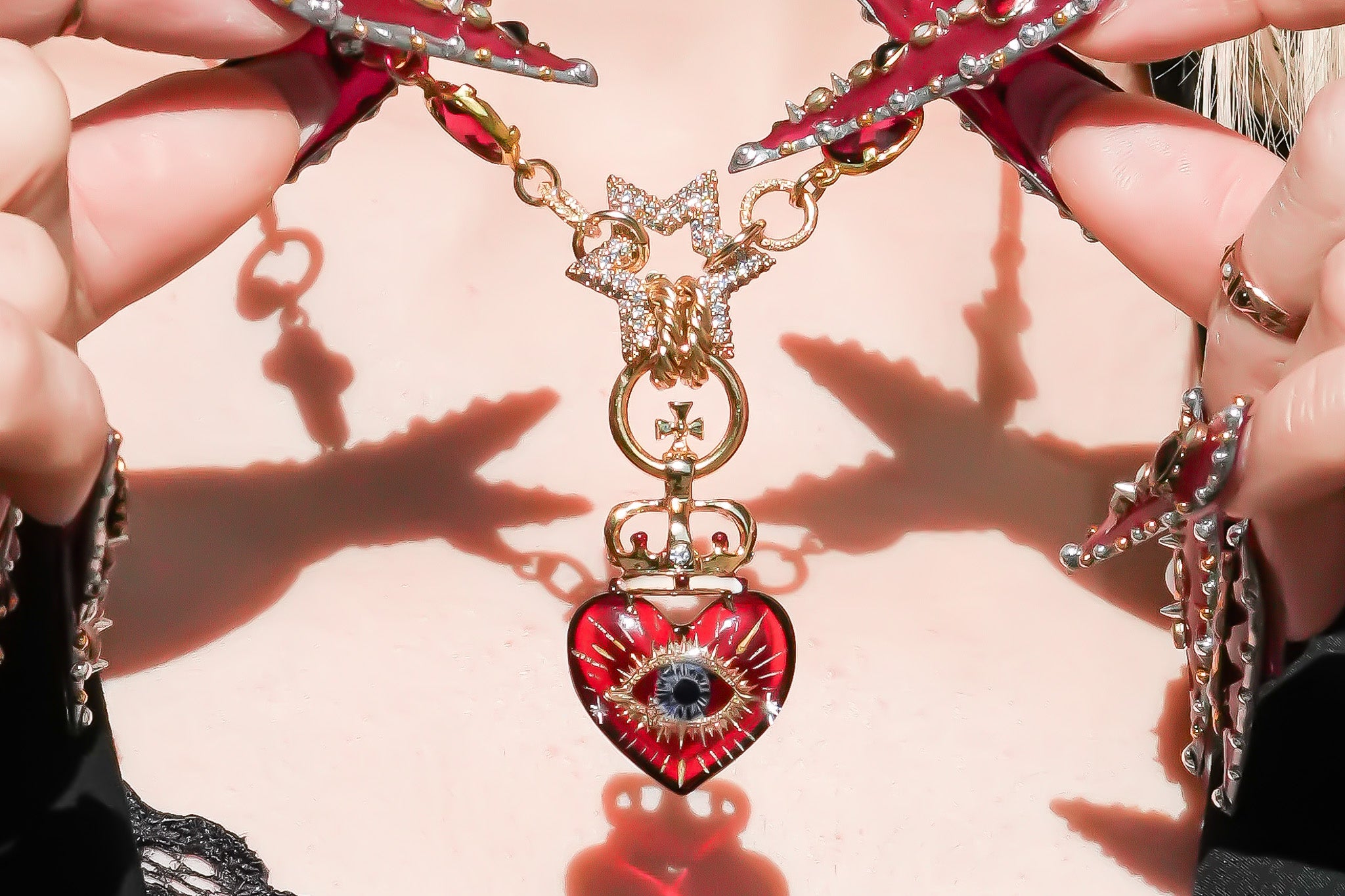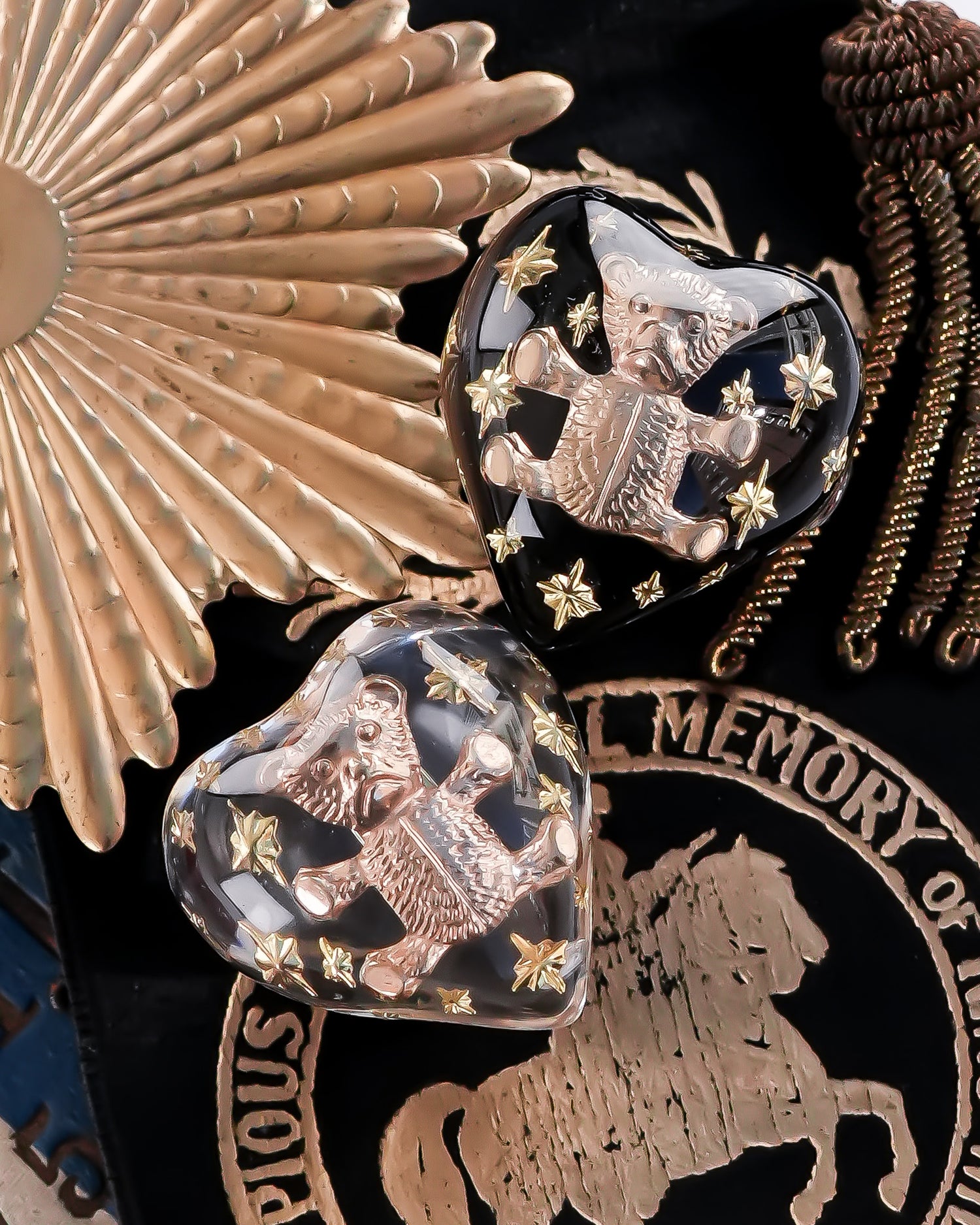 ハートの中に閉じ込められたベアモチーフは、RUKAらしいユーモアとファンタジーが融合したデザイン。