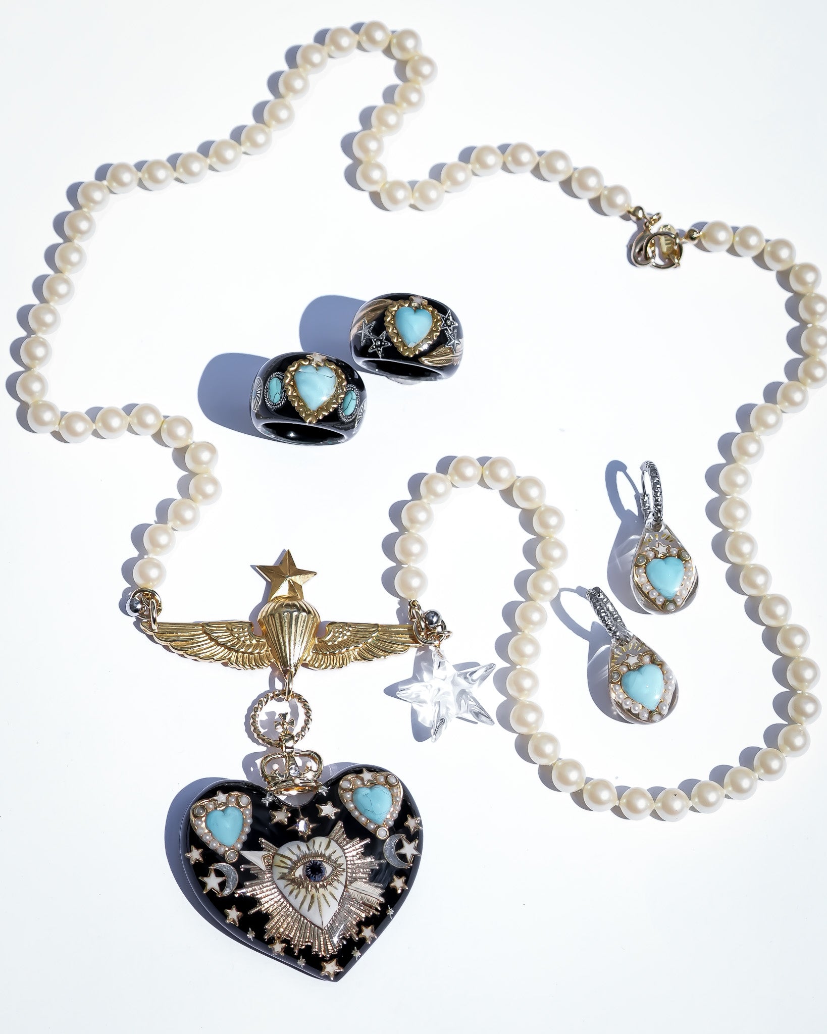 LOVE DROP EARRINGS / TURQUOISE / HEART / CLEAR