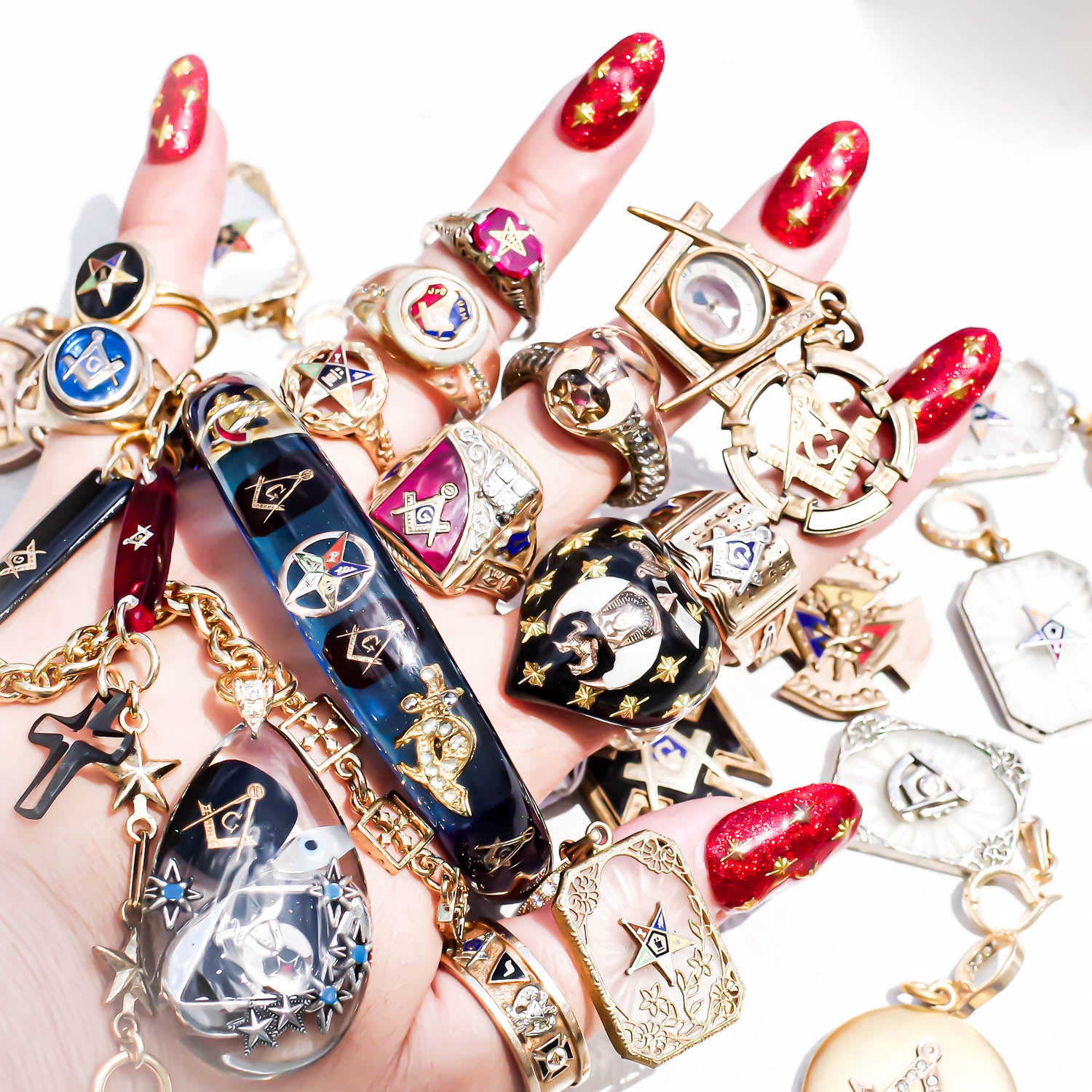 This is a one-of-a-kind ring featuring an antique Freemason Shriner pin brooch purchased in the United States .