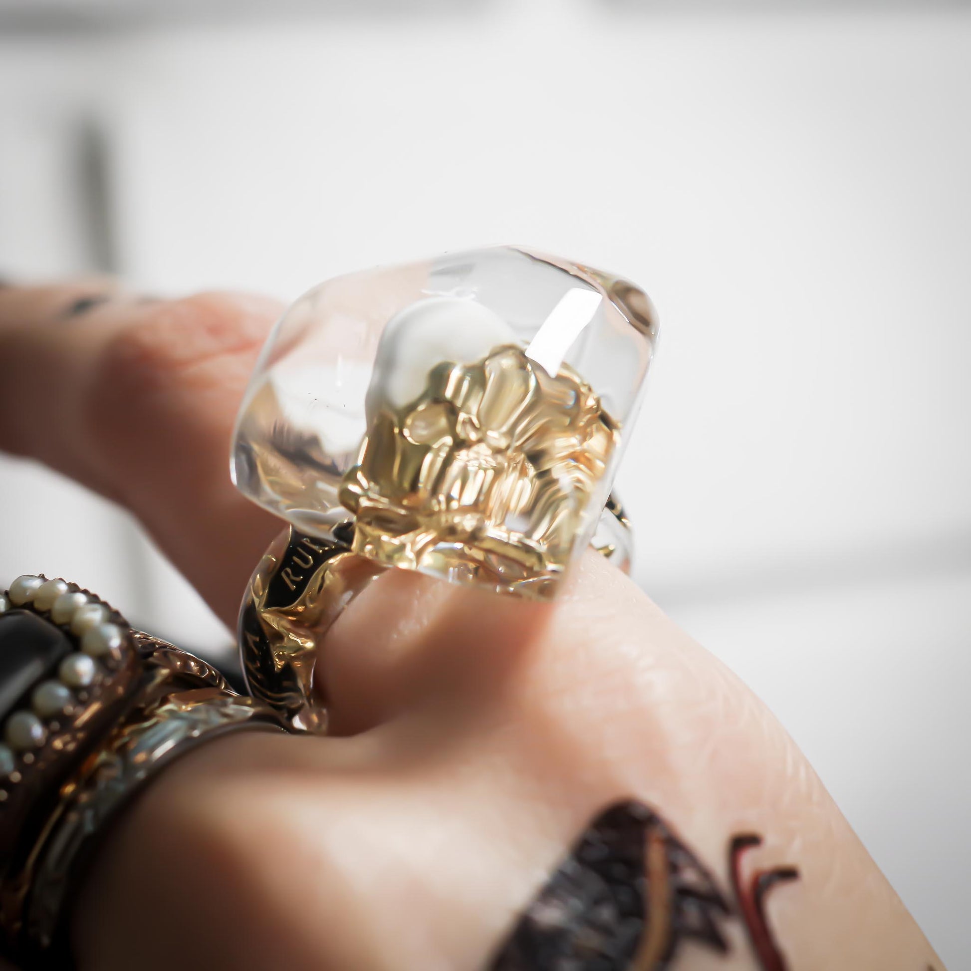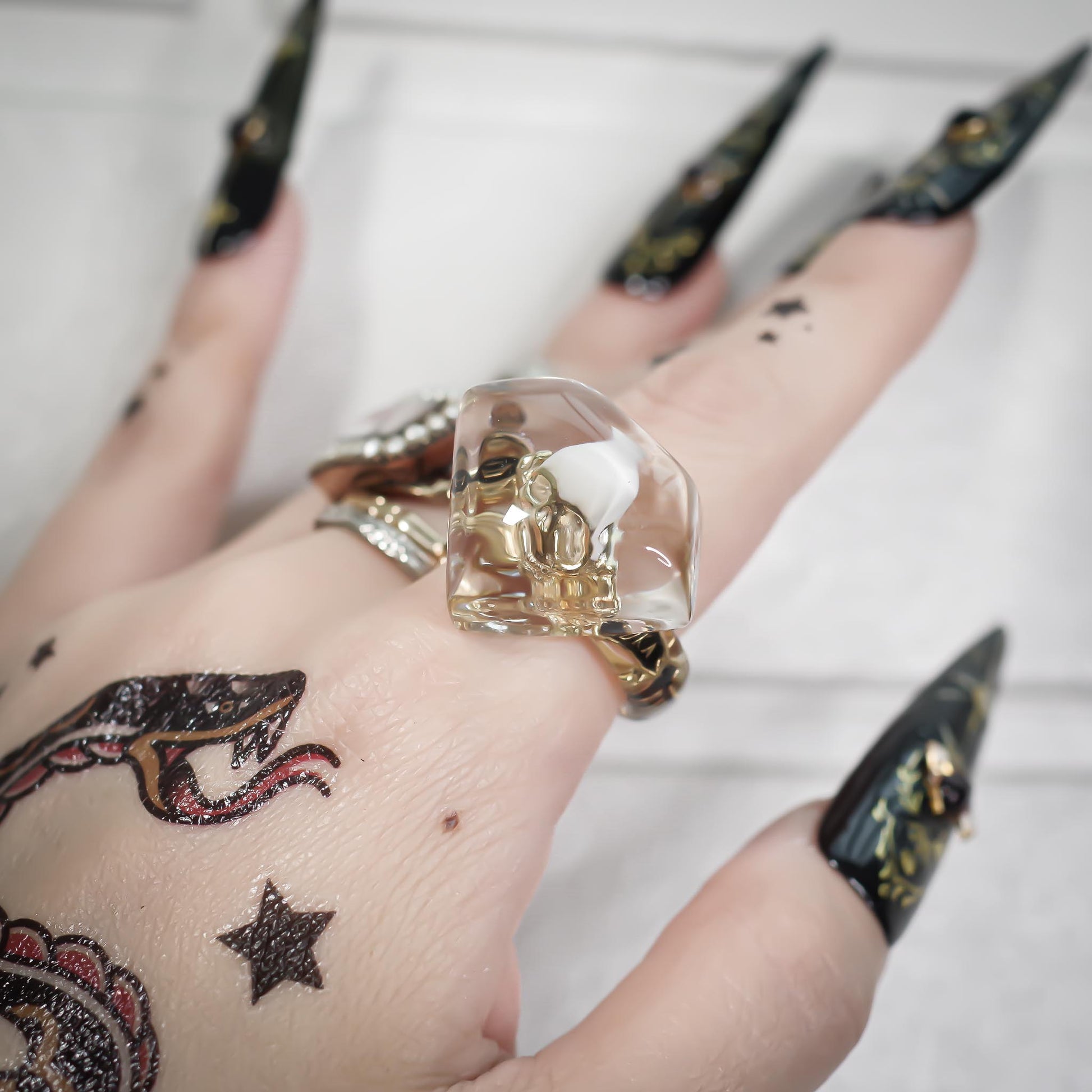 The sides of the Memento Mori ring were inspired by the MOURNING RING, which was popular during the Victorian era.