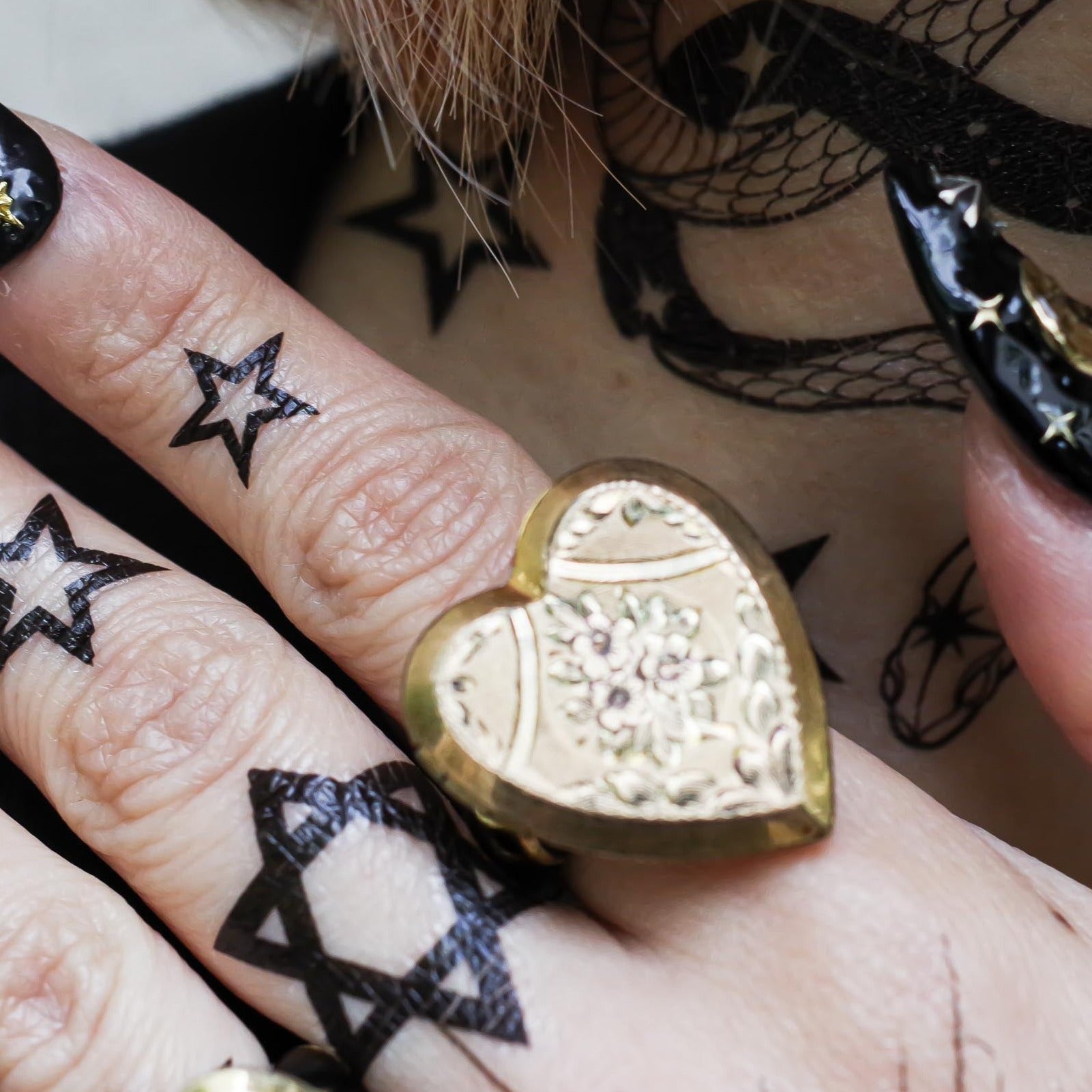 HEART LOCKET RING / FLOWER / #12 / 14KGF