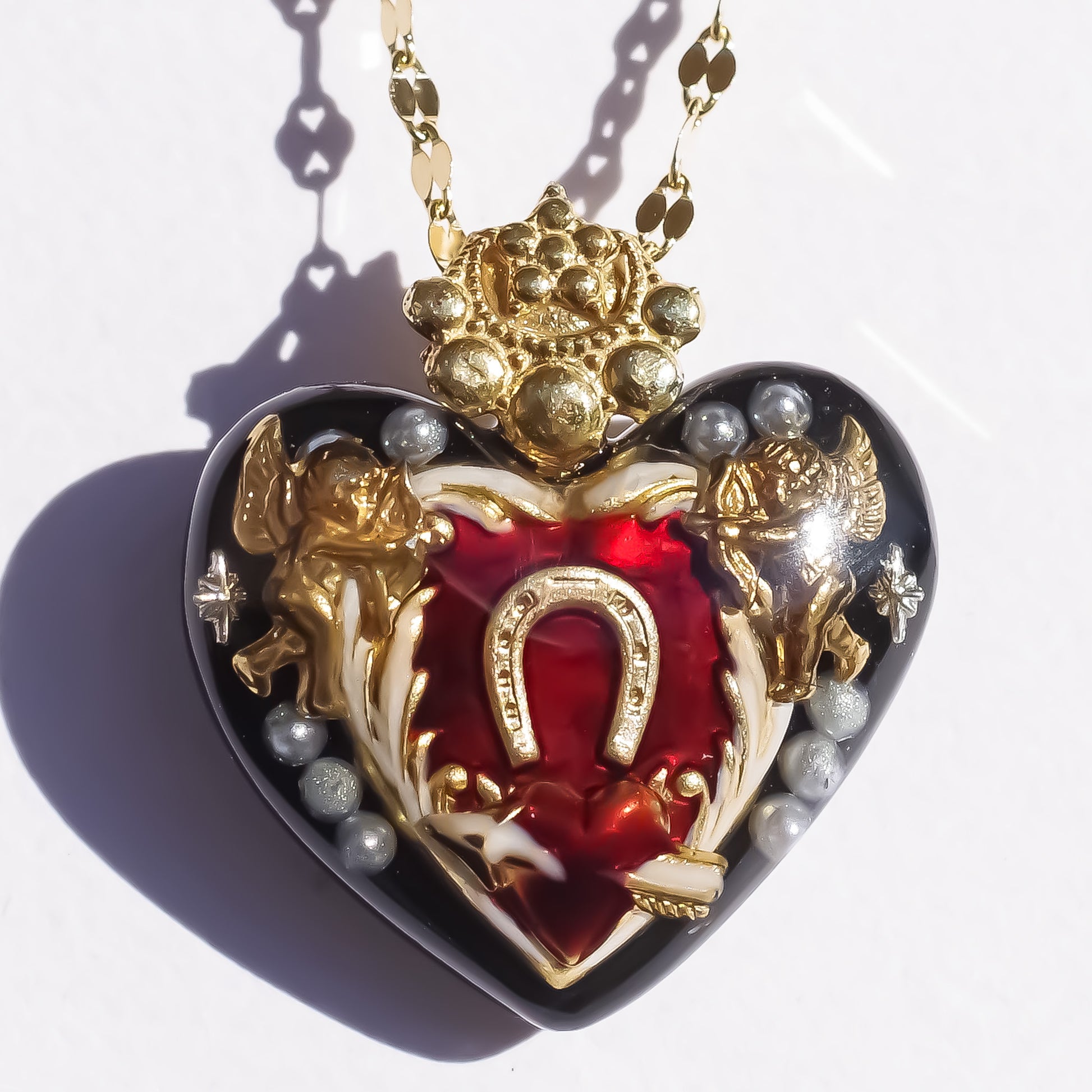 ANGEL NECKLACE / HEART / HORSESHOE /BLACK