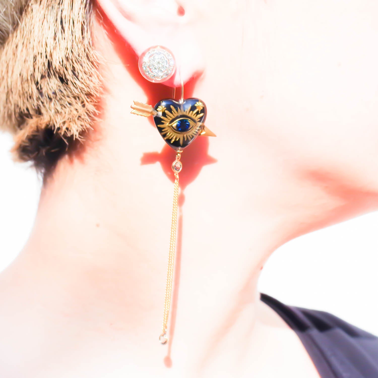 EYE CUPID EARRING / HEART / BLACK / 1P