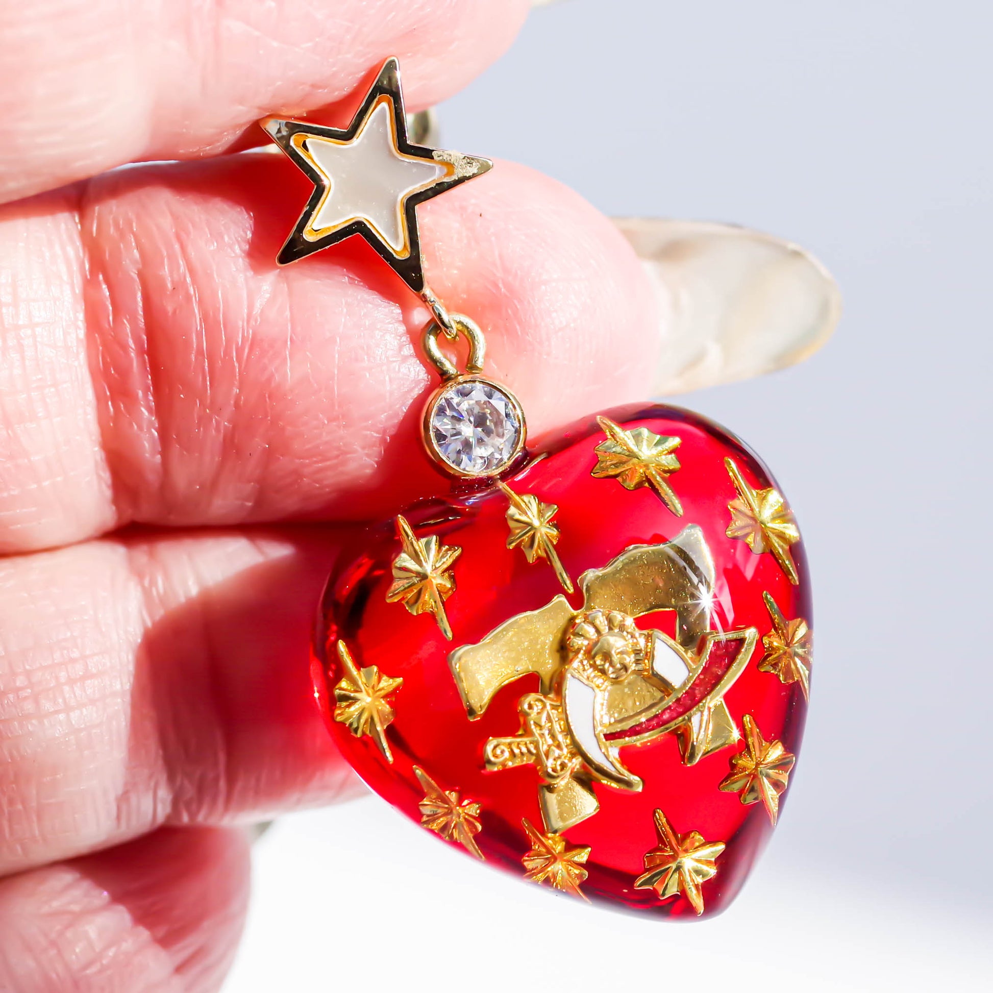 こちらはアメリカで買い付けて来たヴィンテージのフリーメイソンのピンブローチが入ったピアスです。