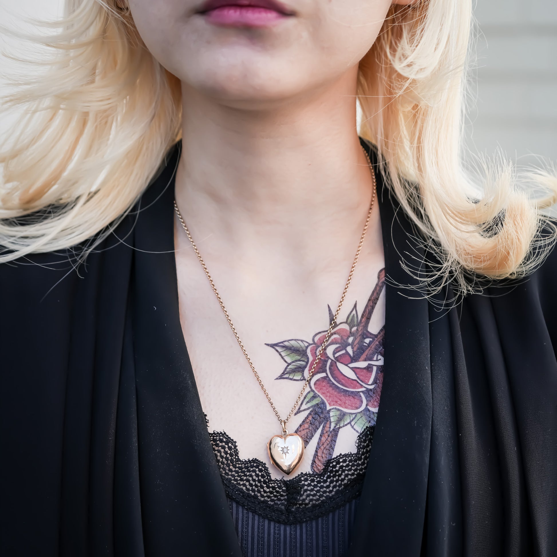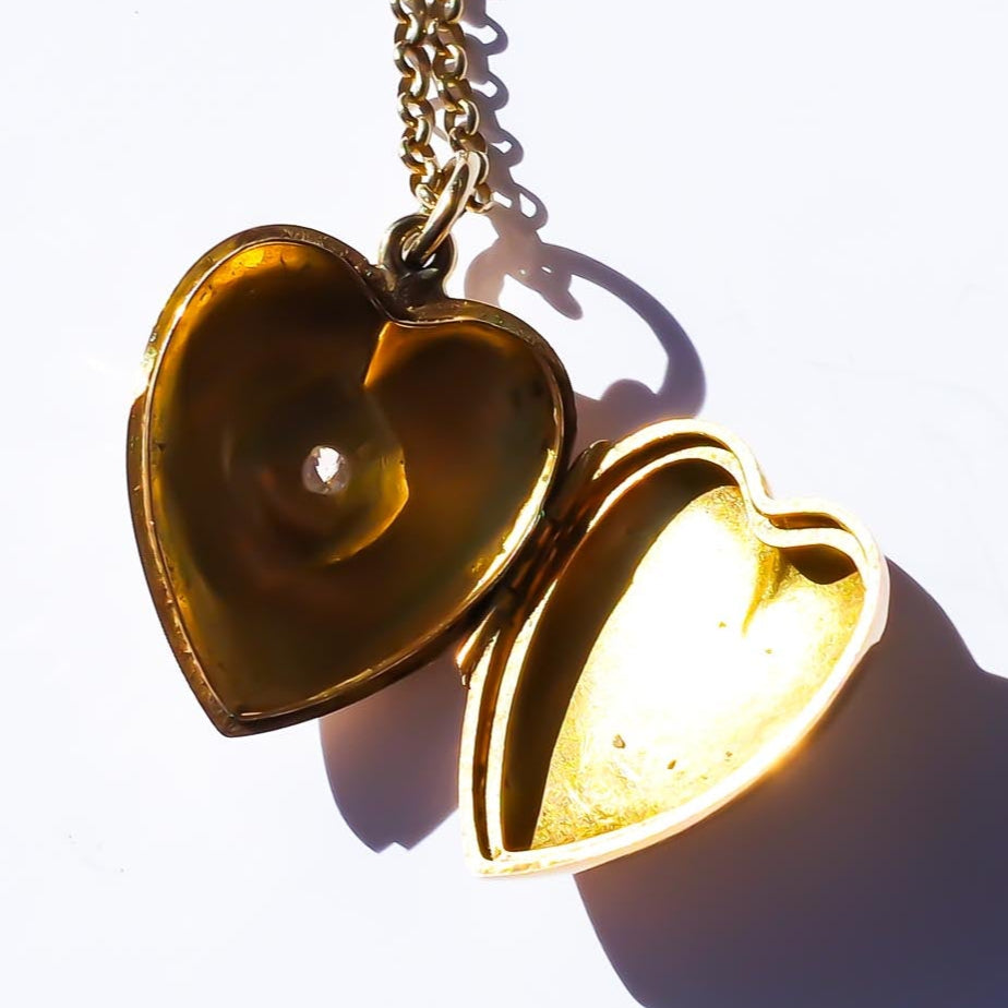 HEART LOCKET NECKLACE / DIAMOND / 9K