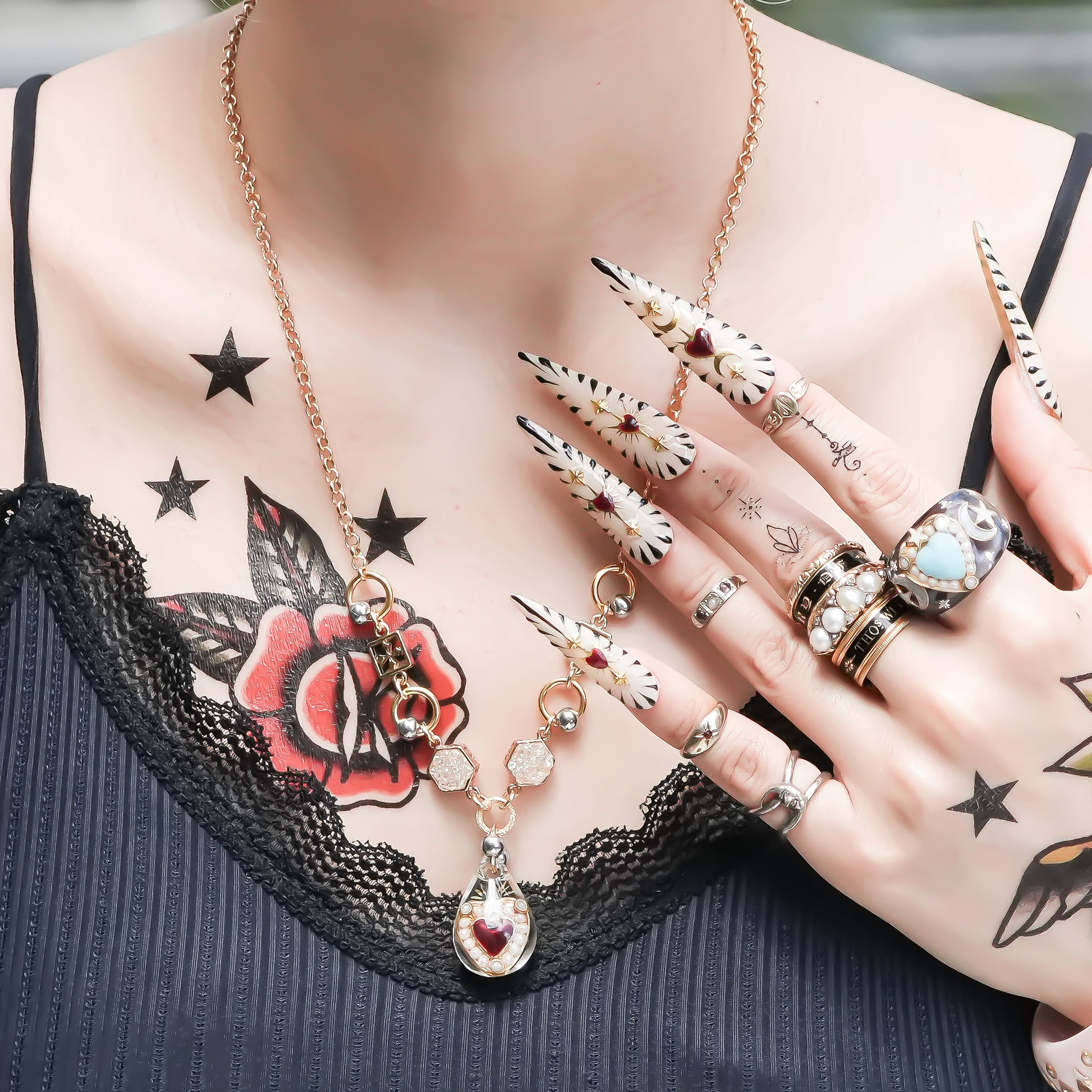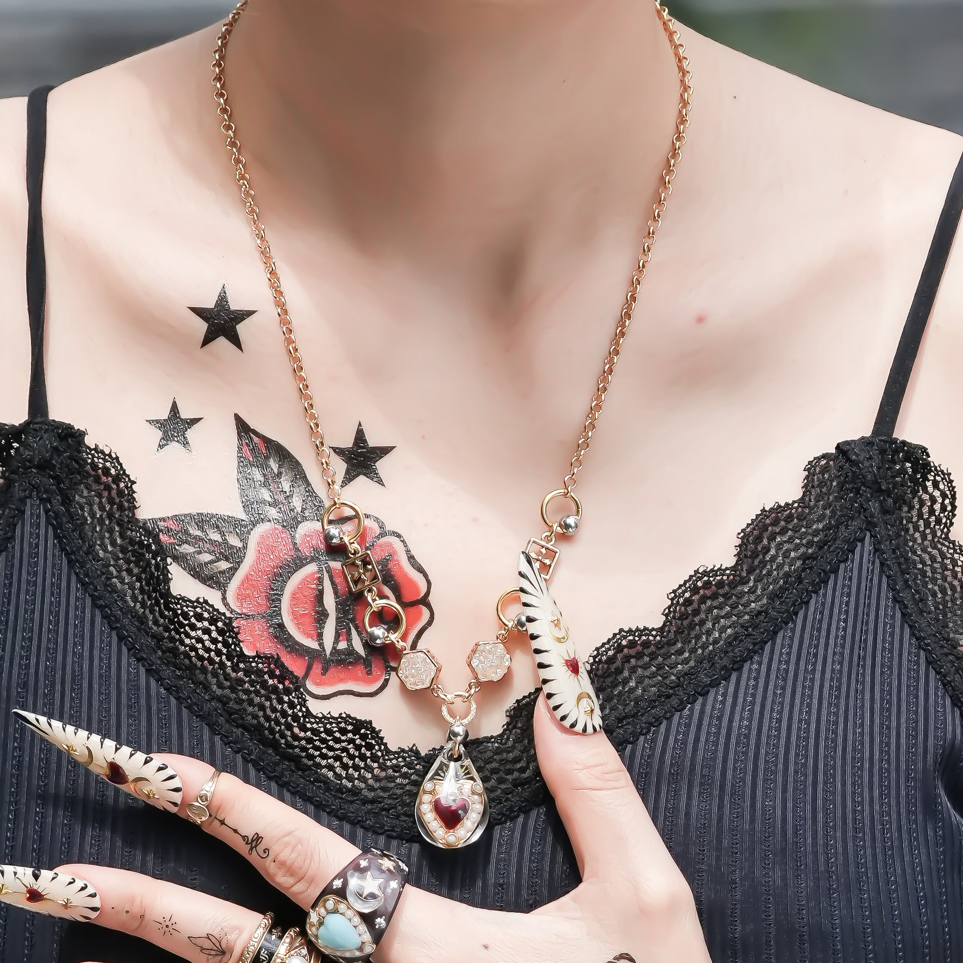 チェーン部分もトップに合わせてヴィンテージパーツなどを組み合わせました。