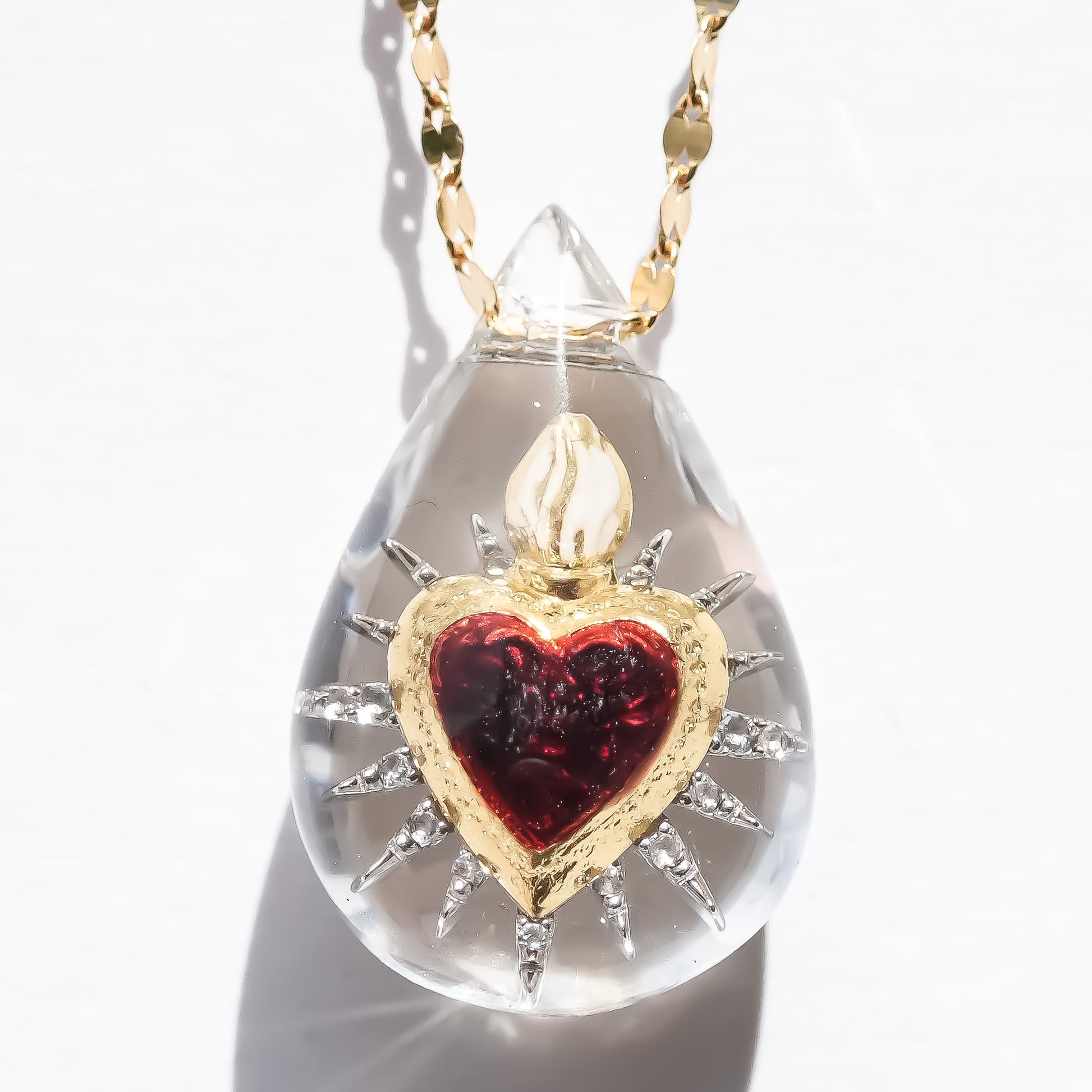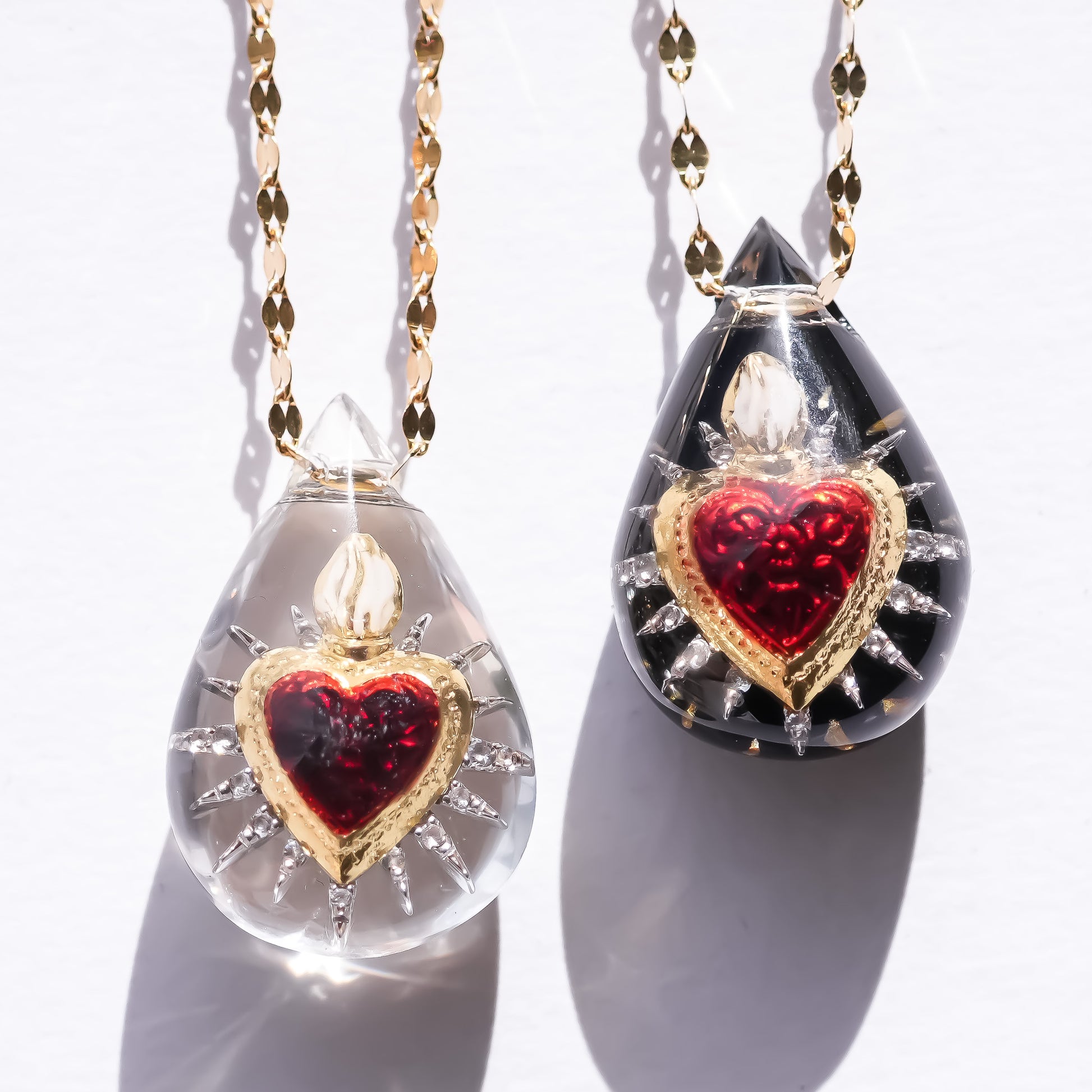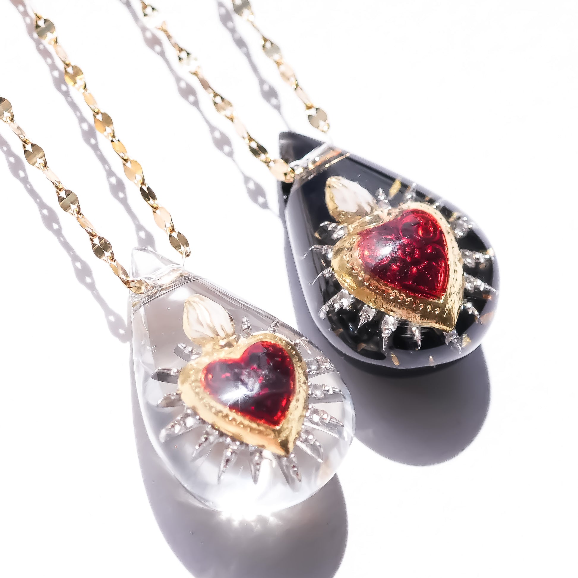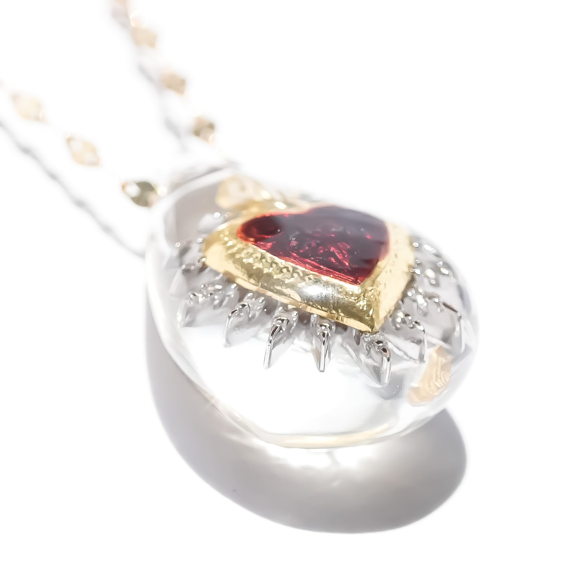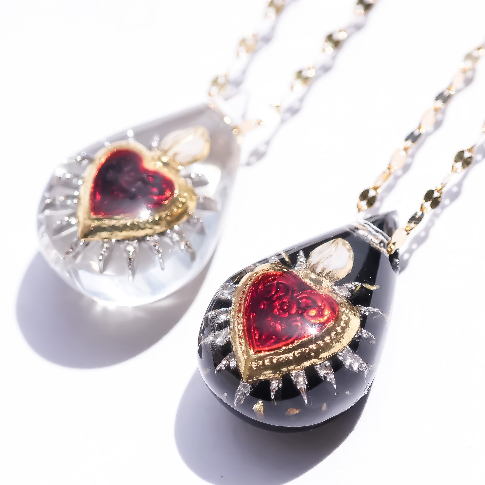ドロップの中にフランスで買い付けて来たアンティークのハートチャームが入ったネックレスです。