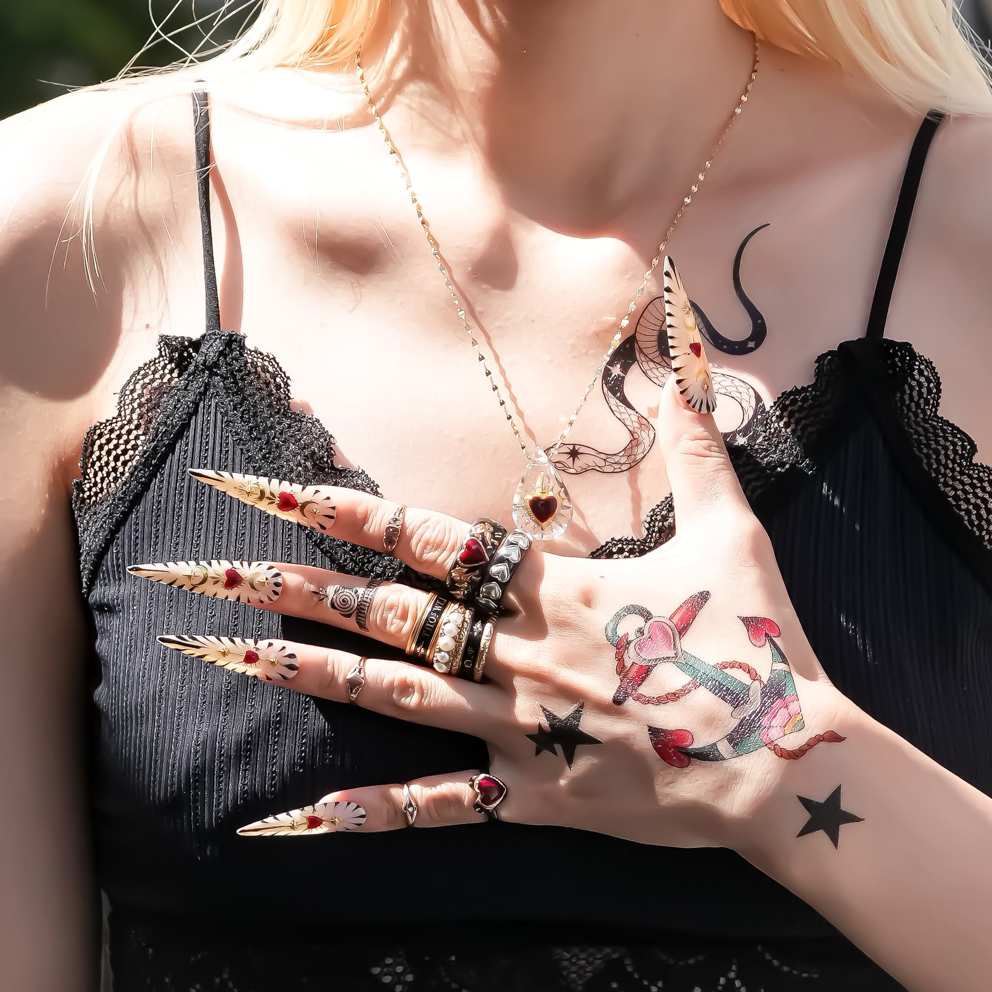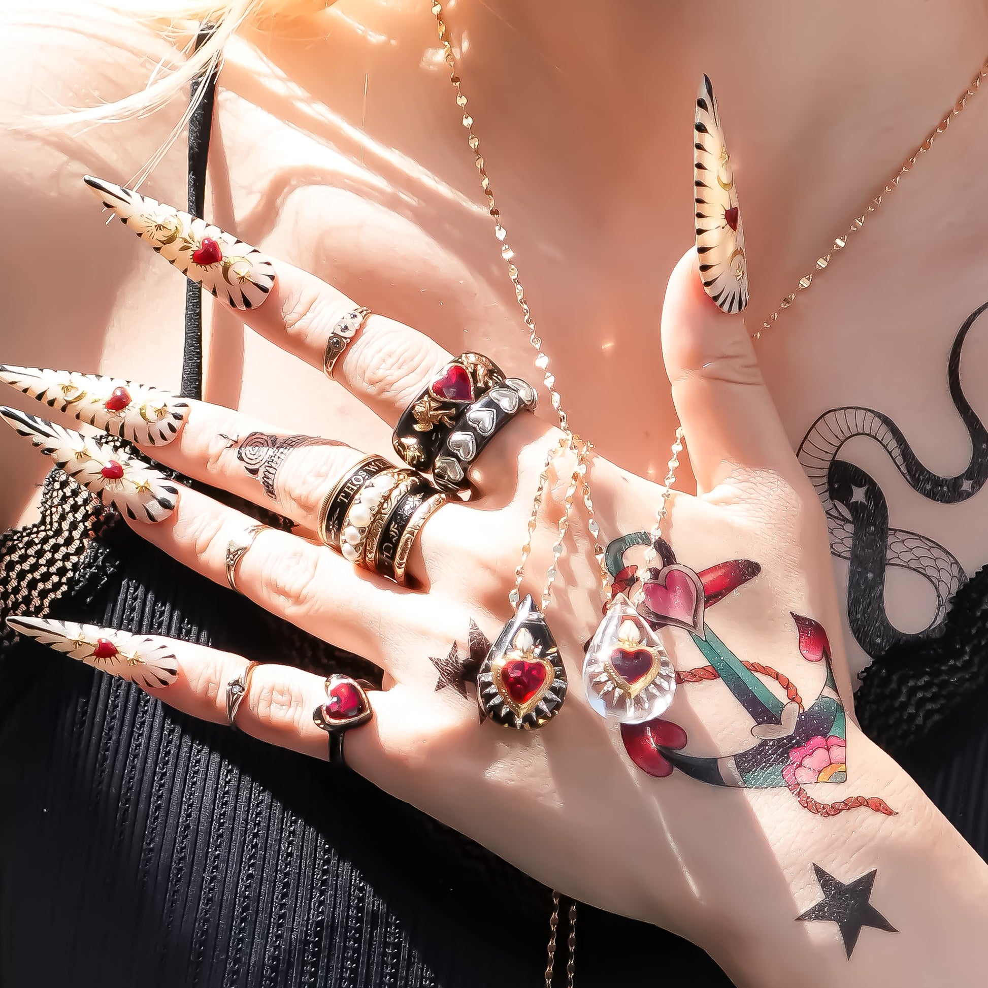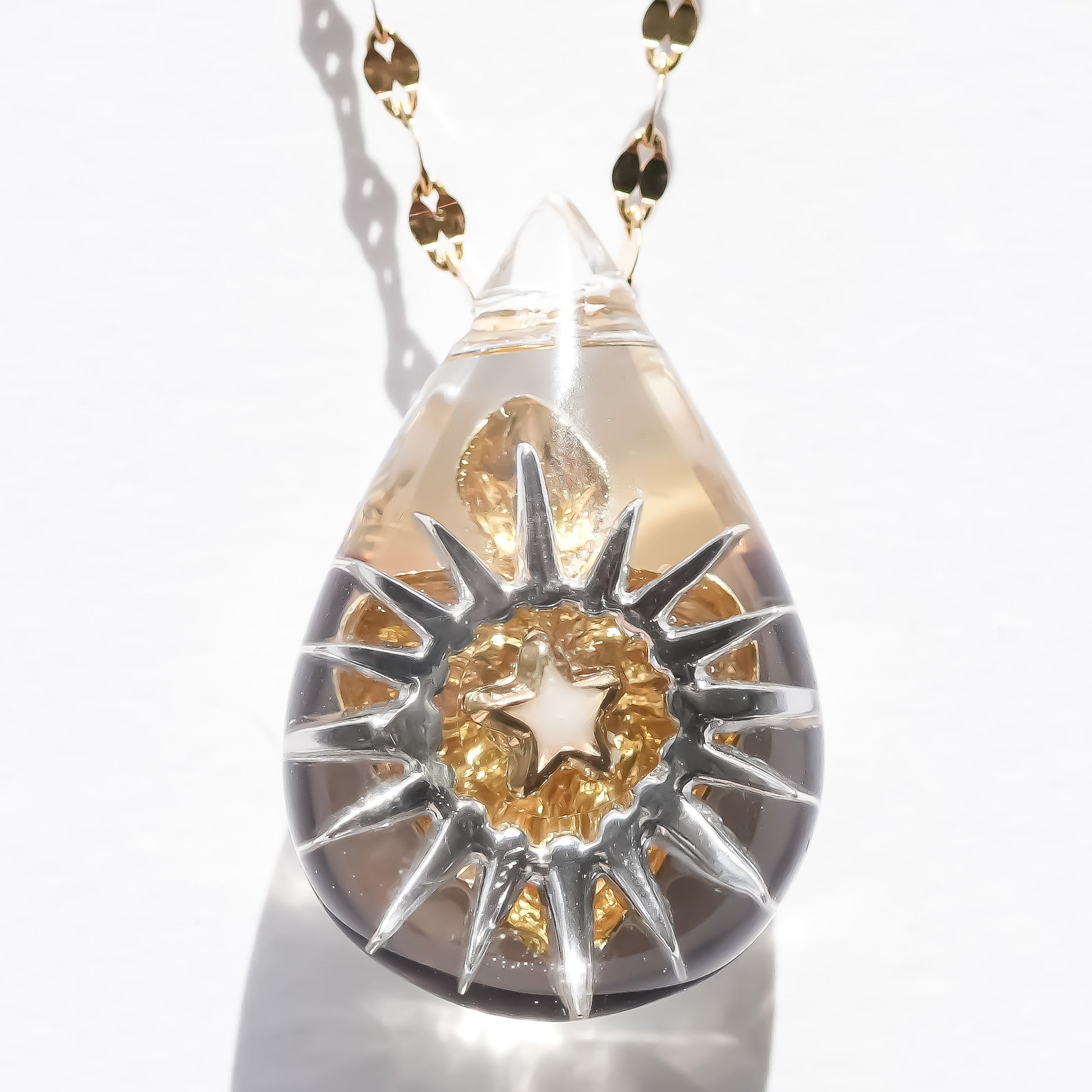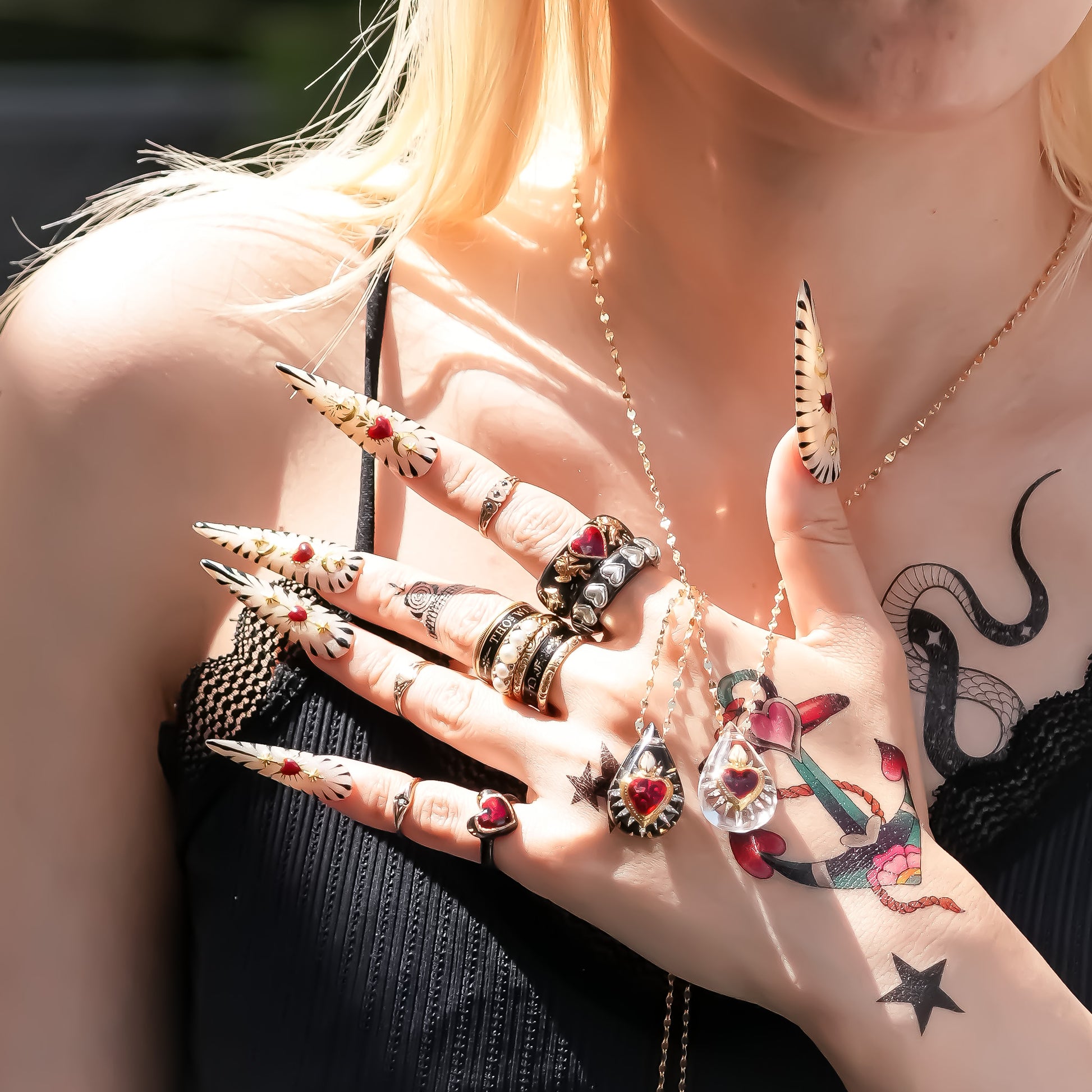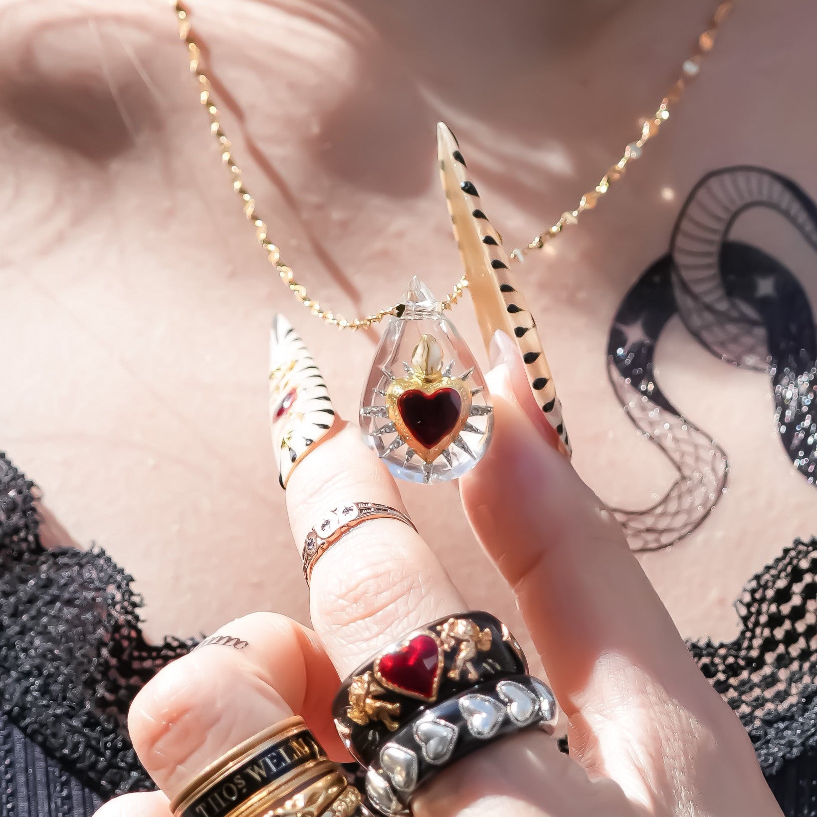 ドロップの中にフランスで買い付けて来たアンティークのハートチャームが入ったネックレスです。