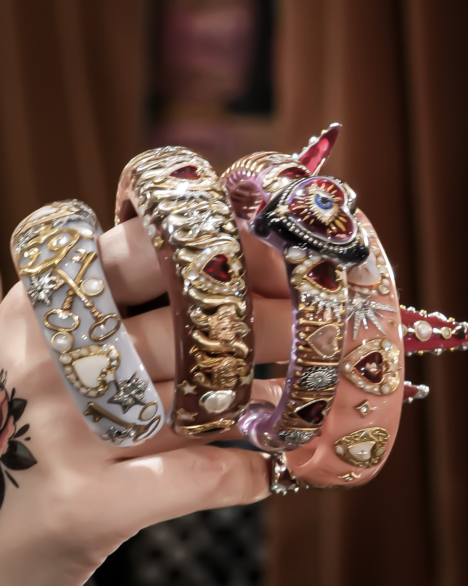 ラベンダーのベースに包まれたバングルは、まるで魔法使いの秘密の宝物。