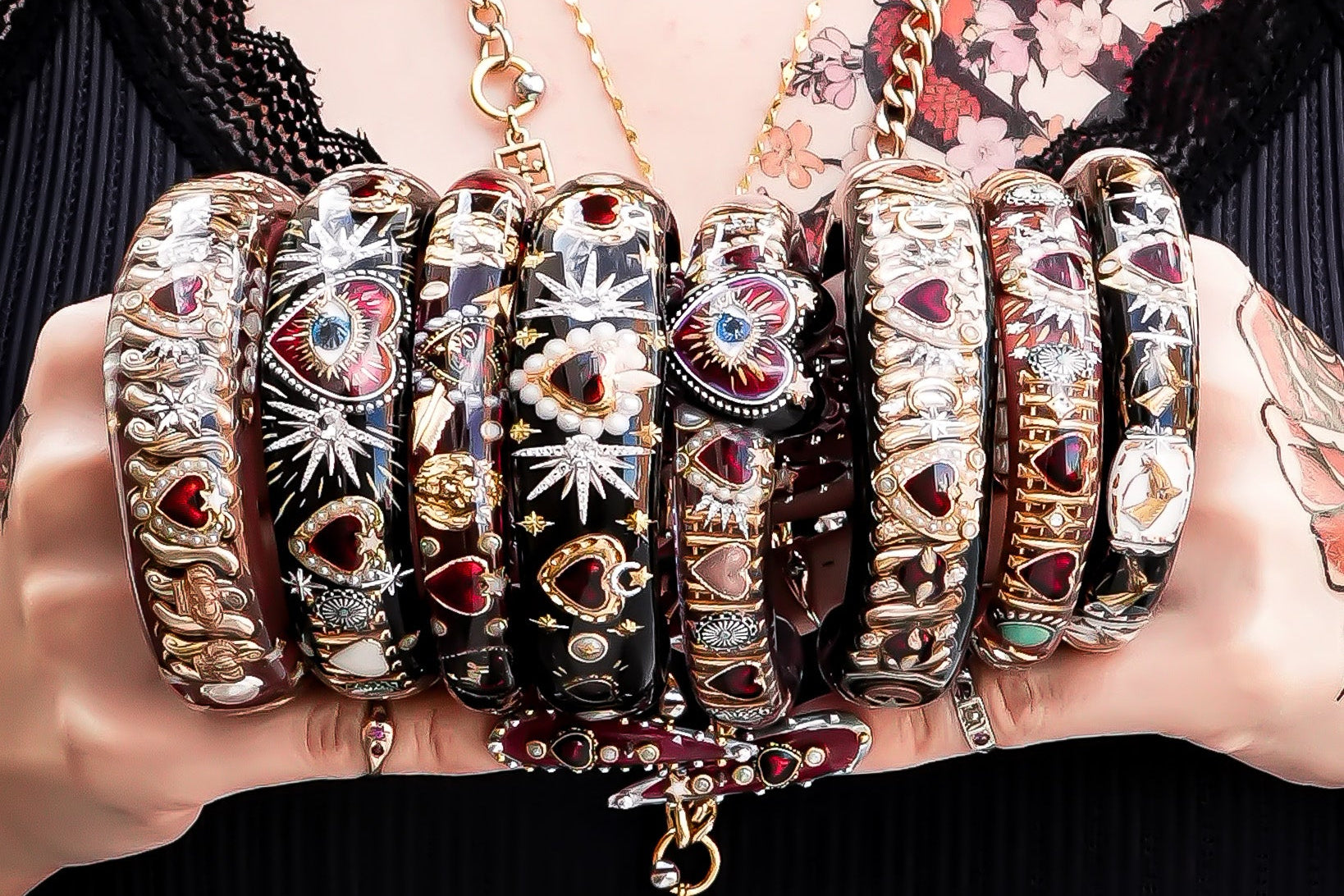 Opal Heart Crown Bangle – Smoky Pink & Gray