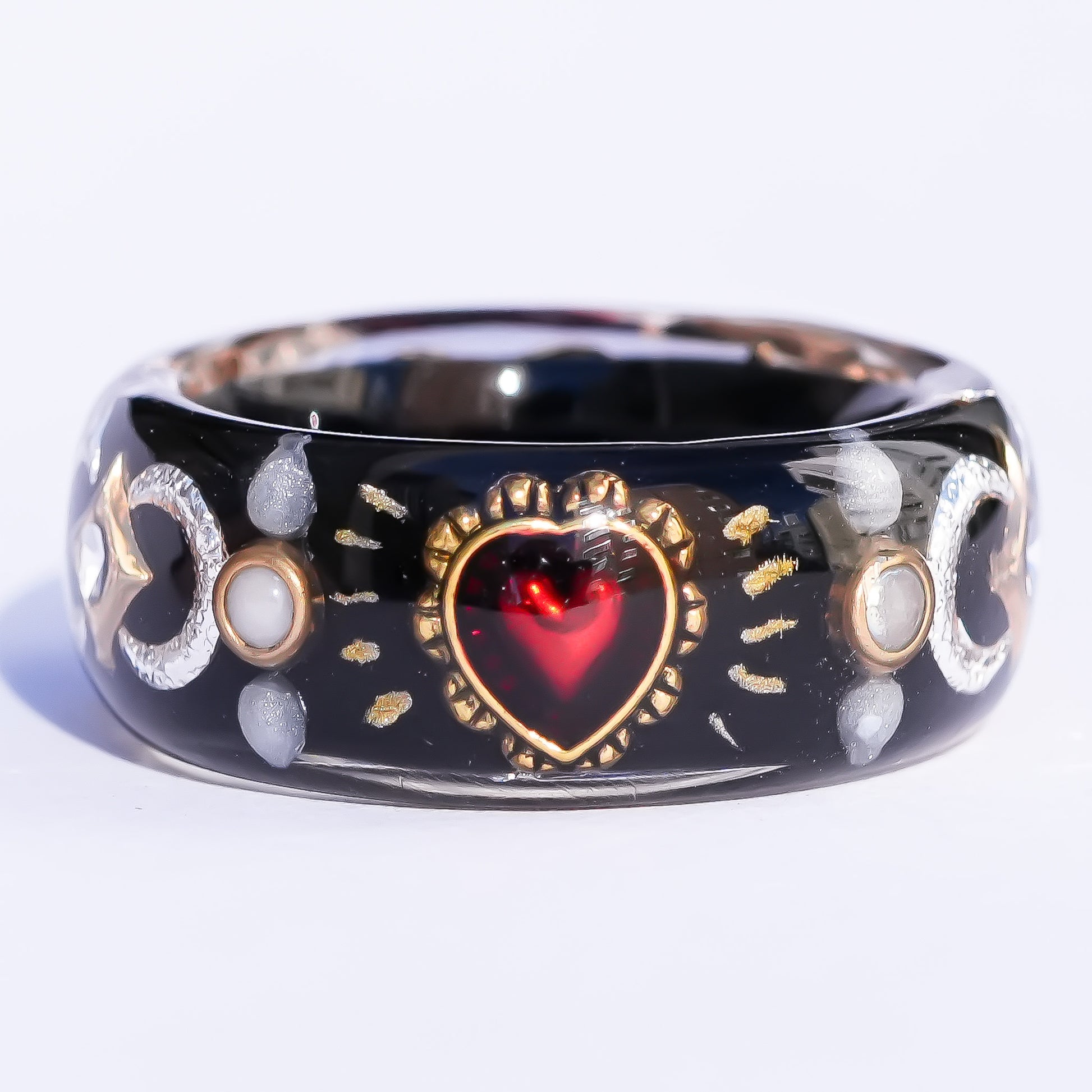 夜空のような漆黒のリングに、燃えるような赤いハート。