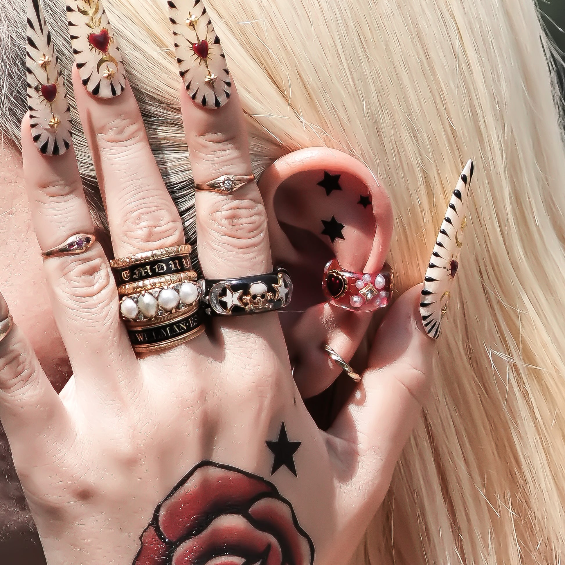 それぞれのイヤーカフには、世界中から集めたヴィンテージのハートチャームを贅沢に封じ込め、ひとつひとつに異なる物語と個性が込められています。