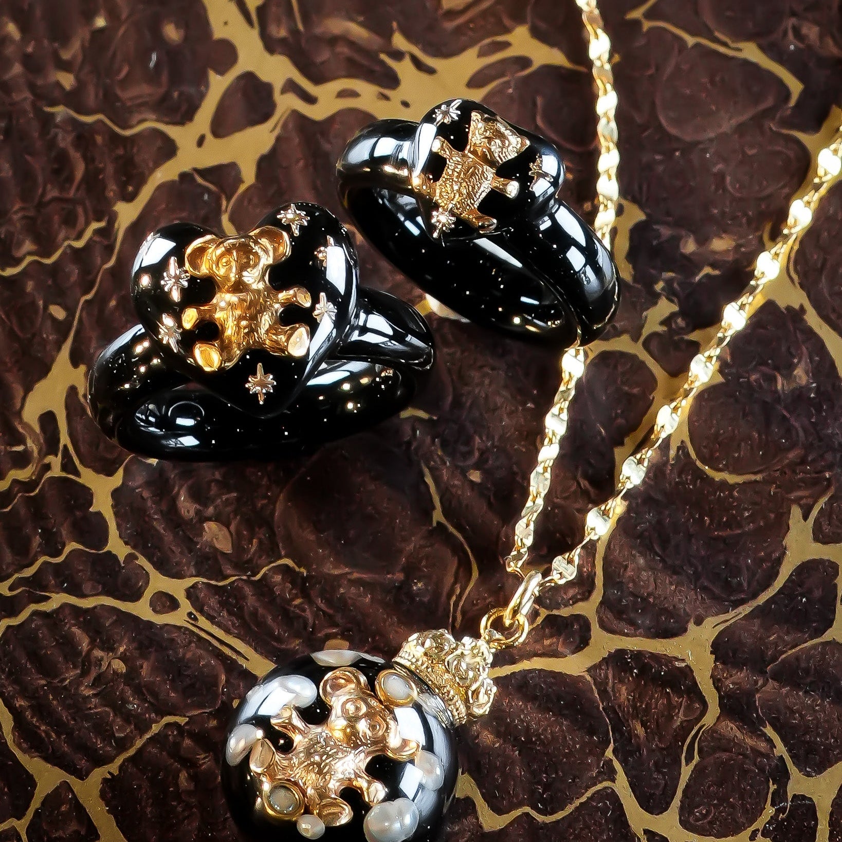 まるで物語のワンシーンのように、ハートの中で輝く小さなベア。