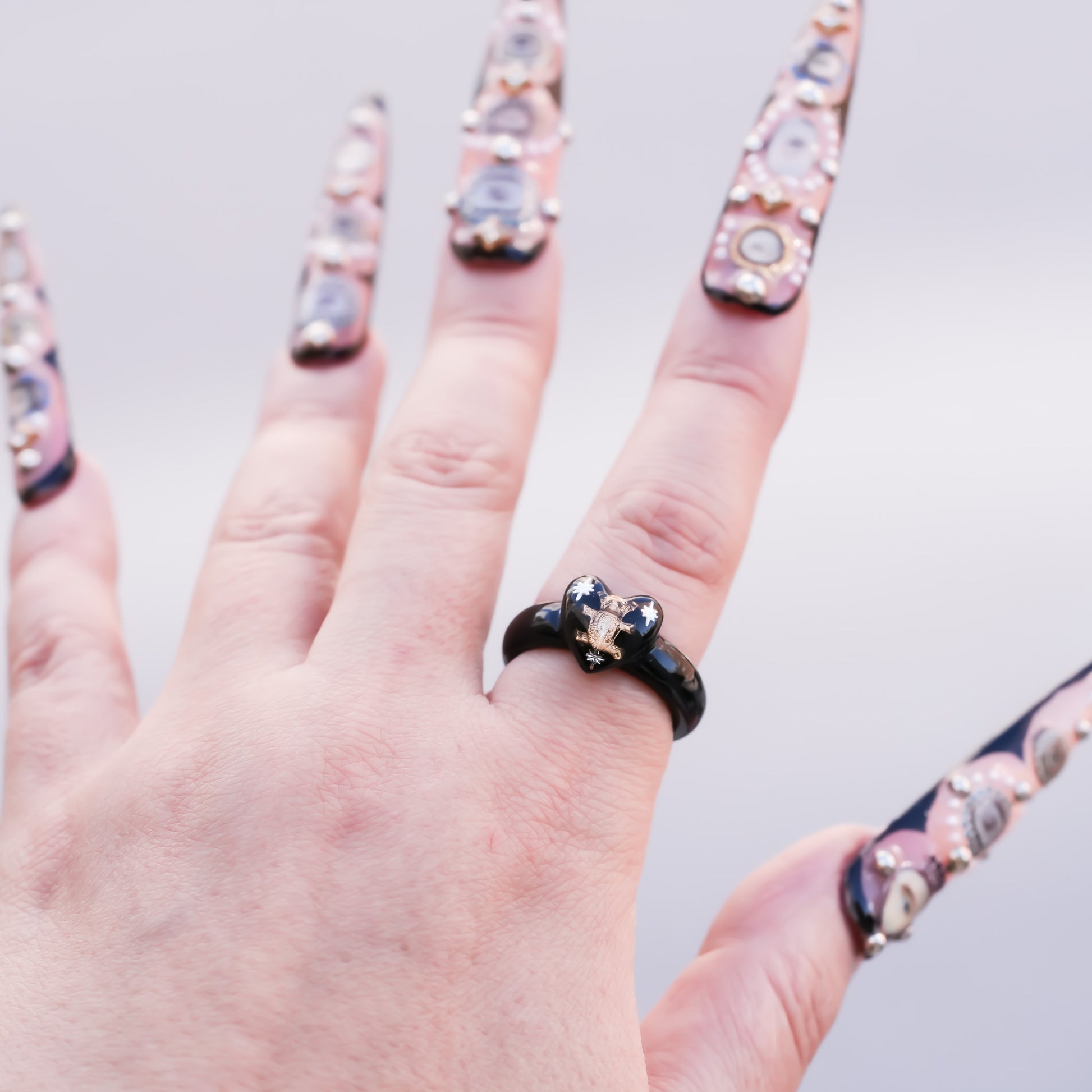 Bear Small Heart Ring - Black / #9 #12 #17