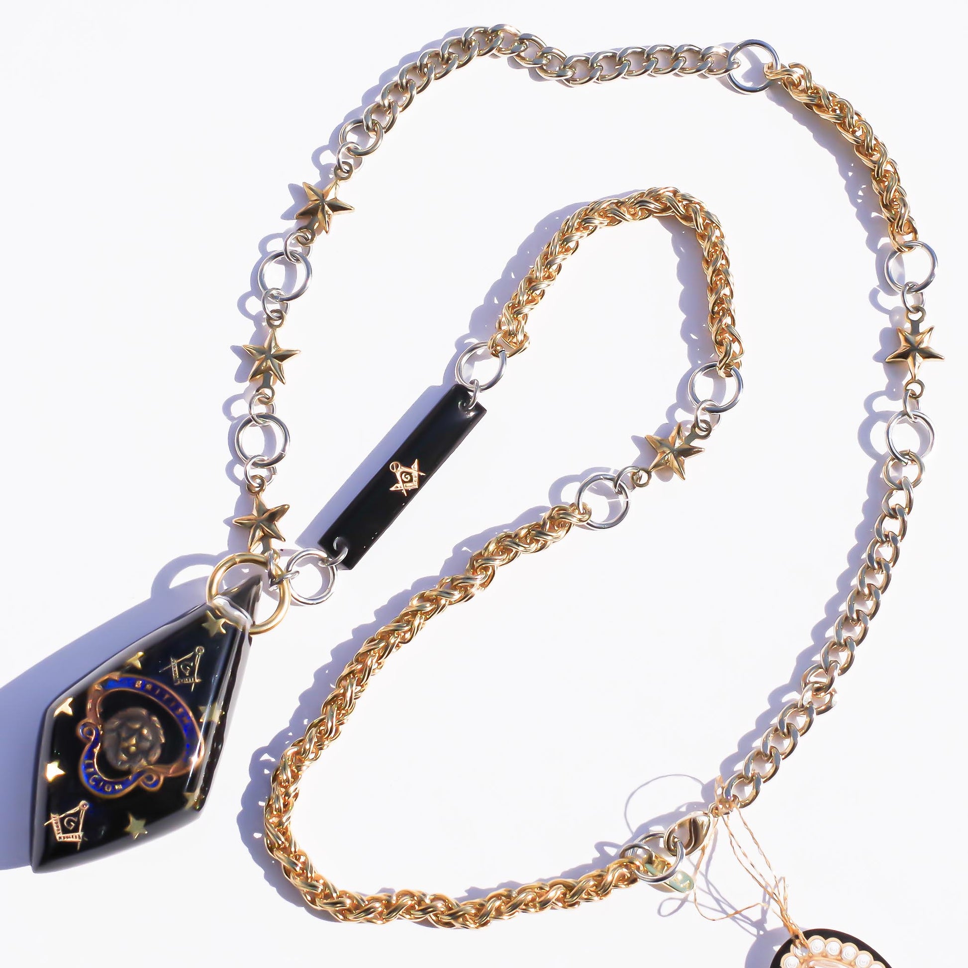 チェーンはフランスやアメリカで買い付けて来たヴィンテージチェーンを使用しており、トップのデザインに合わせて1つ1つ製作しております。