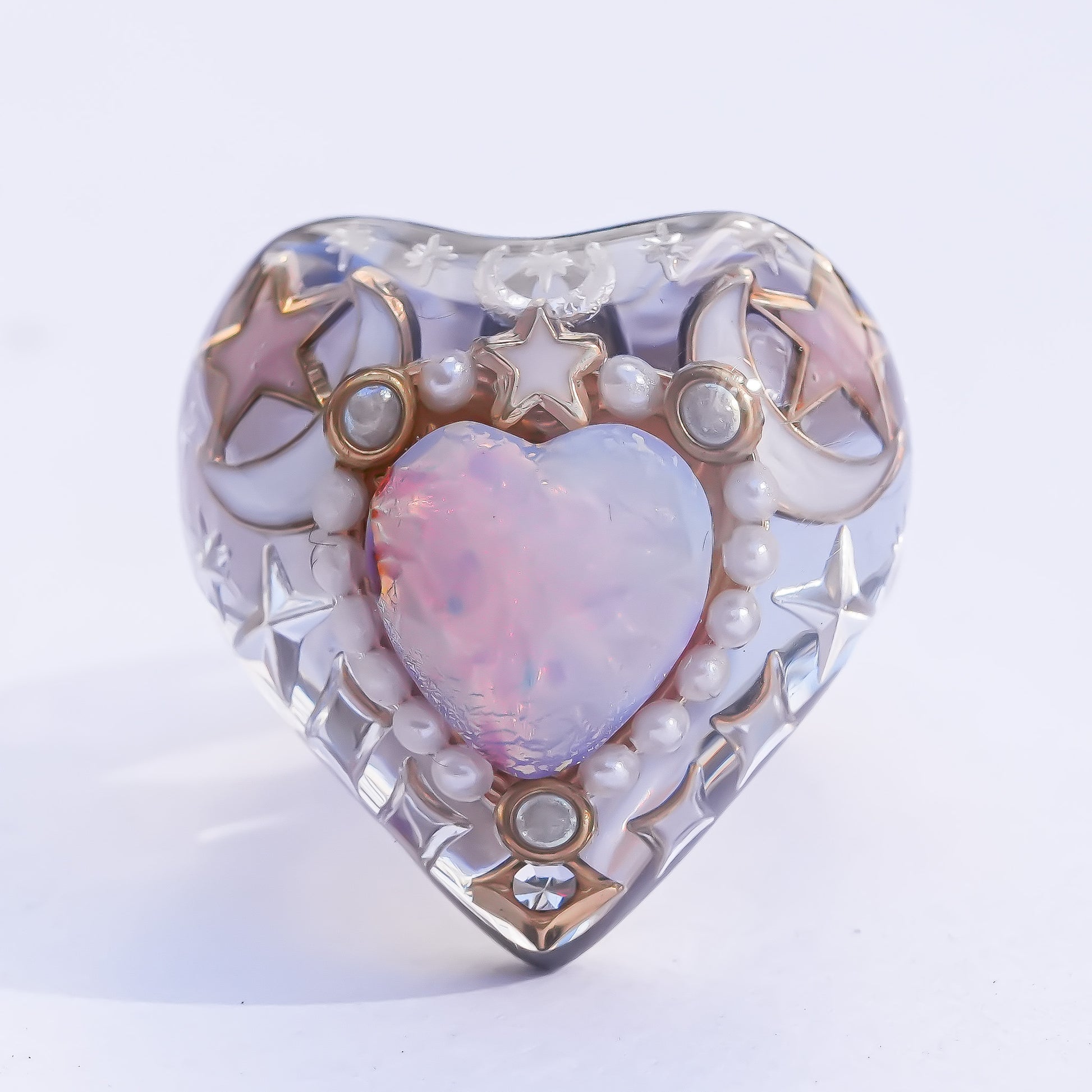 リング全体には星・月・五光・ヴィンテージチャームなどのモチーフを散りばめ、