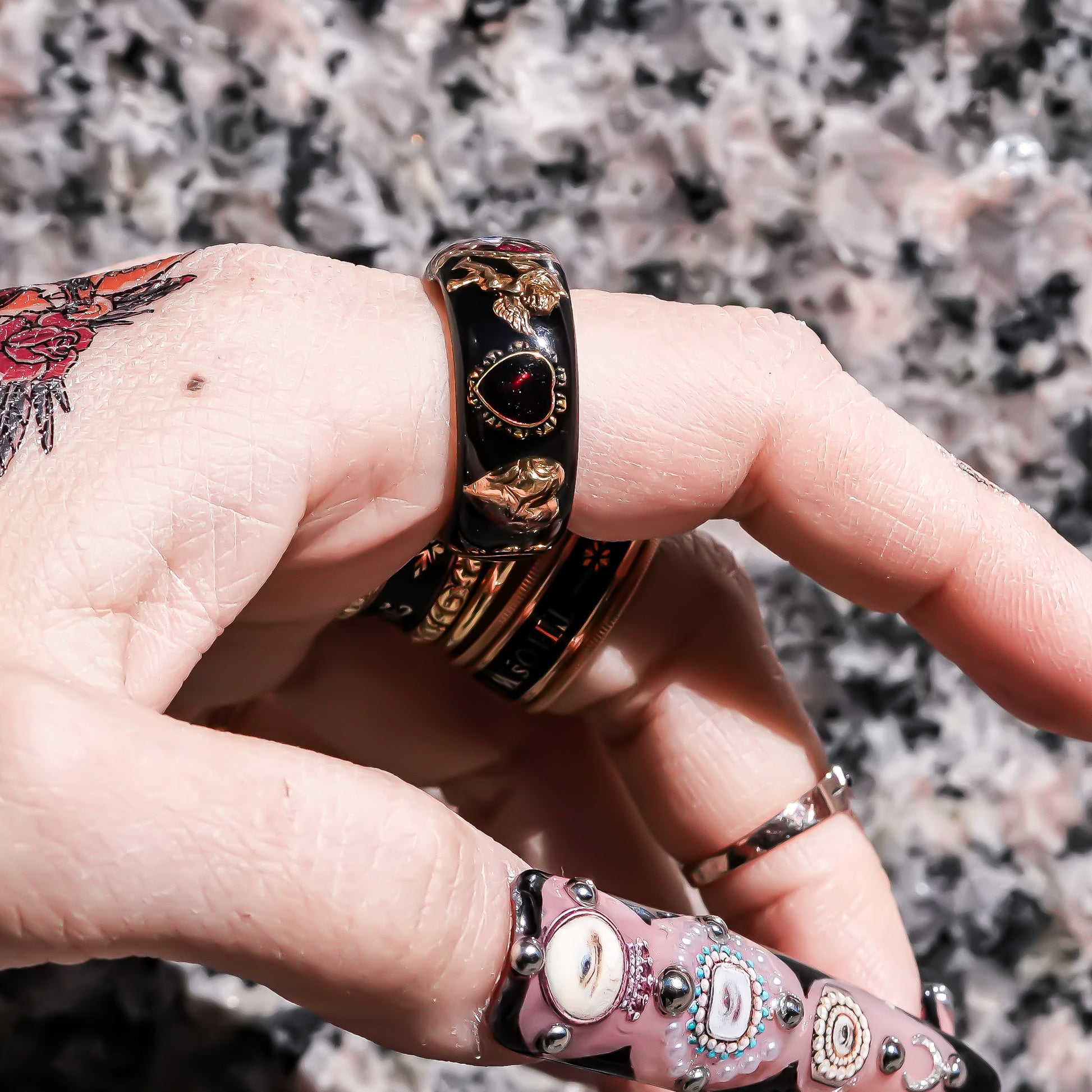 Angel Guarded Heart Eye Ring - black × red / #12 #13 #14