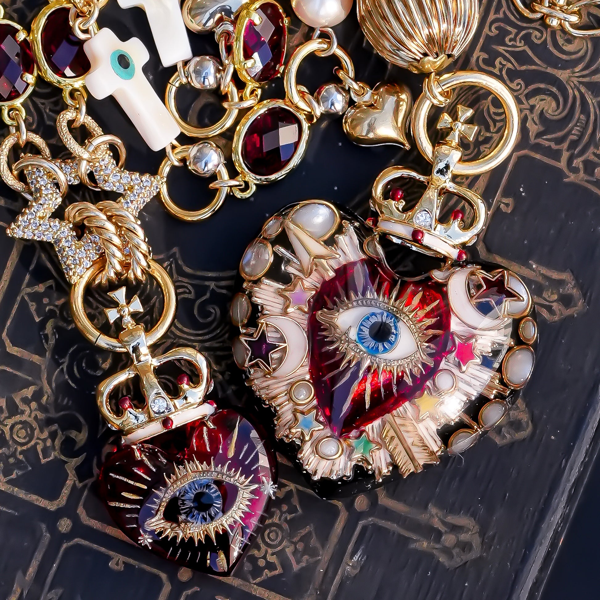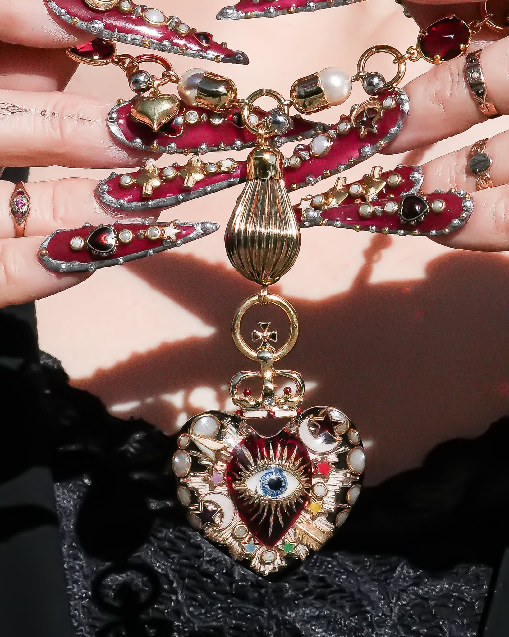 Celestial Lucky Heart Necklace - Black × Red