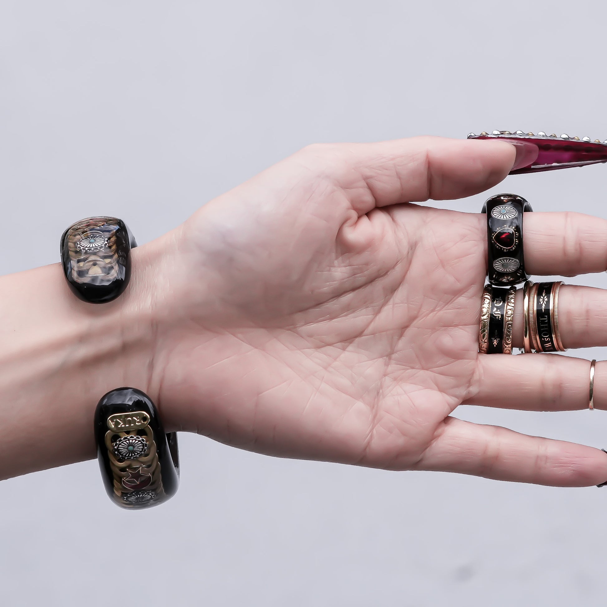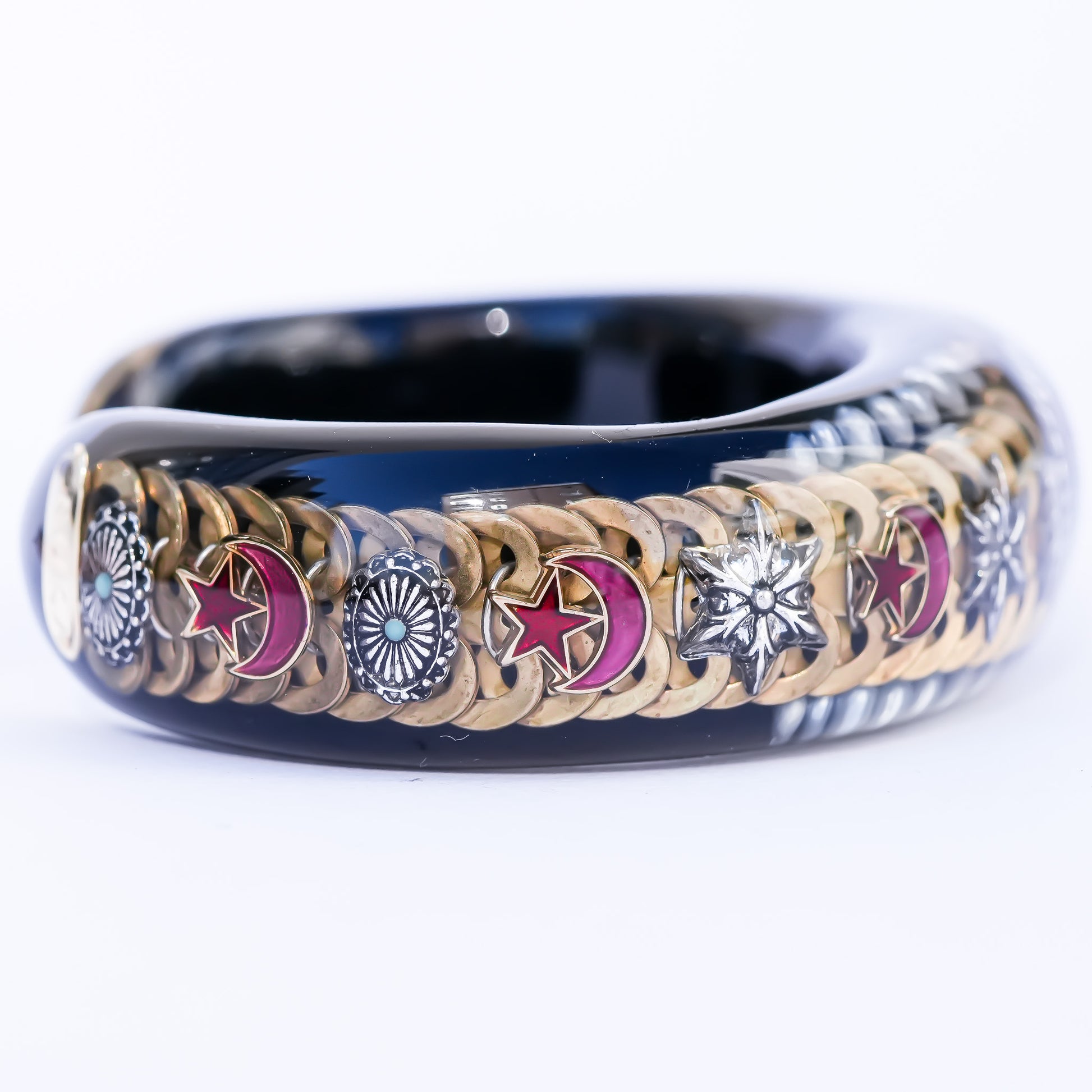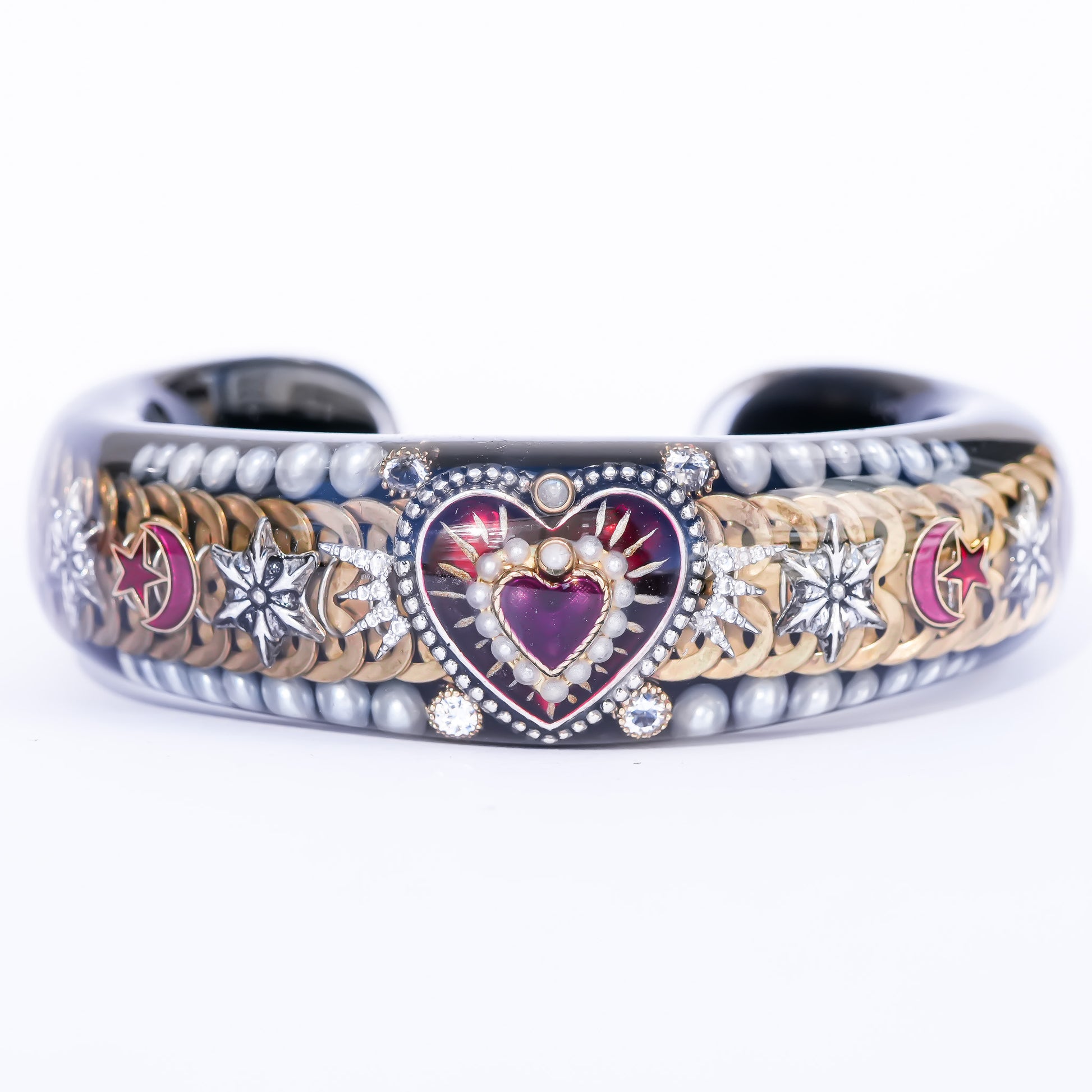 レッド × パープルが溶け合うハートが、気品高く輝くブレスレットです。