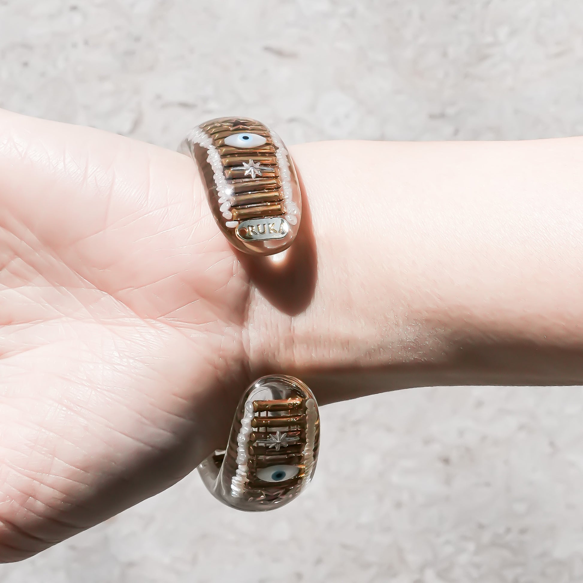 さらに、白蝶貝で作られた“目”のモチーフが散りばめられ、