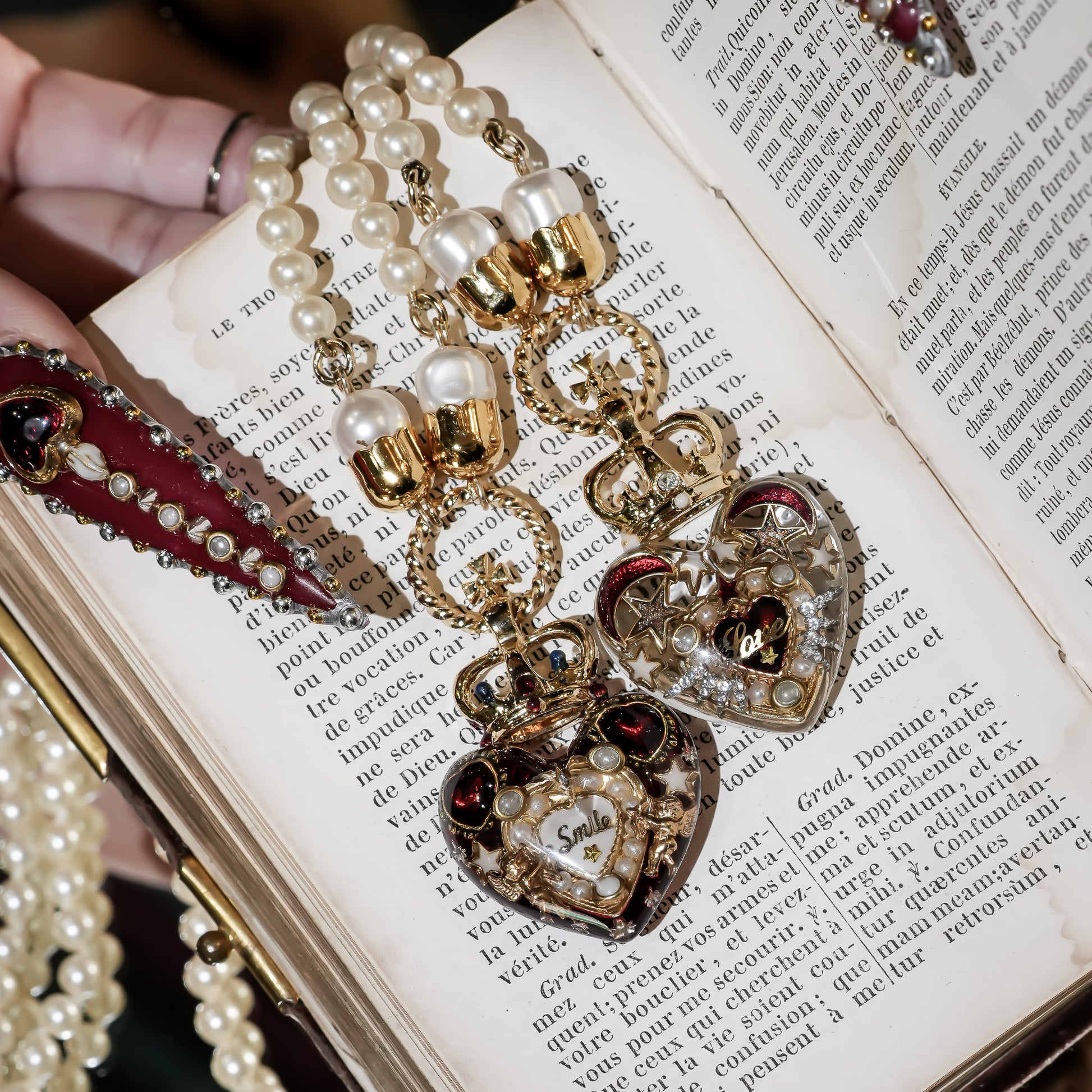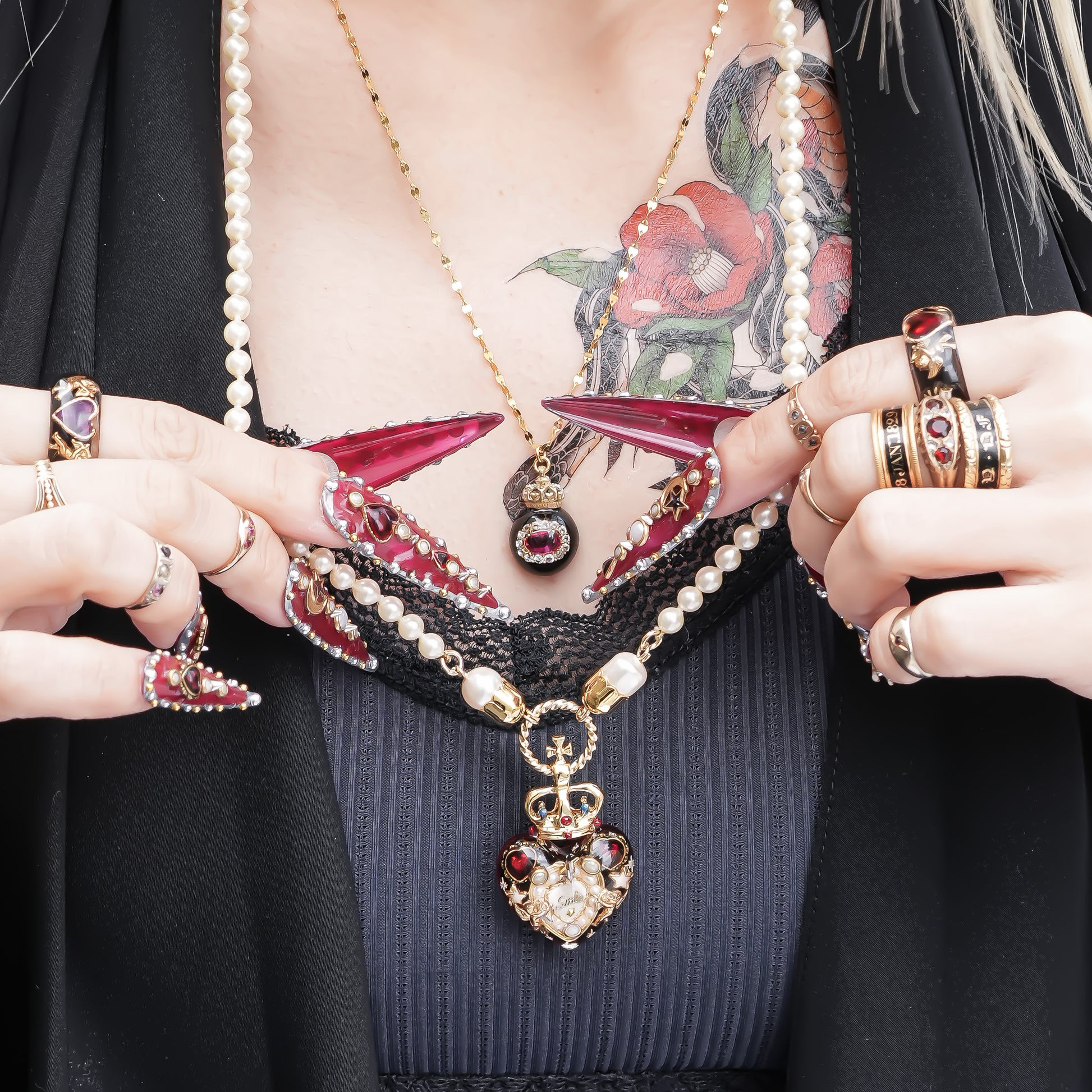 心を射抜くハートトップと王冠のモチーフが印象的な、華やかなネックレス。