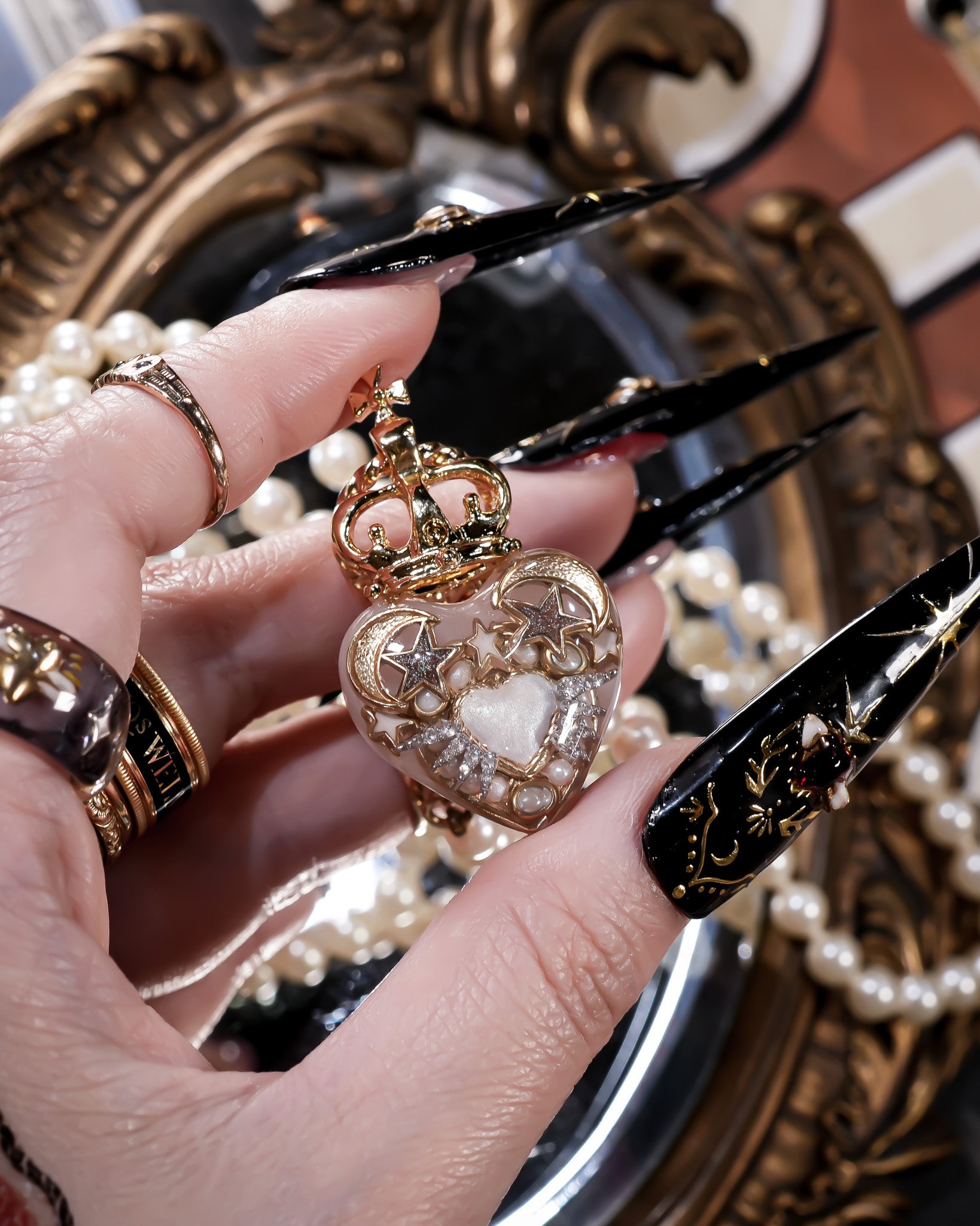 月と星、そしてパールが静かに瞬き、まるで冬の夜空のようなロマンティックな光を描きます。
