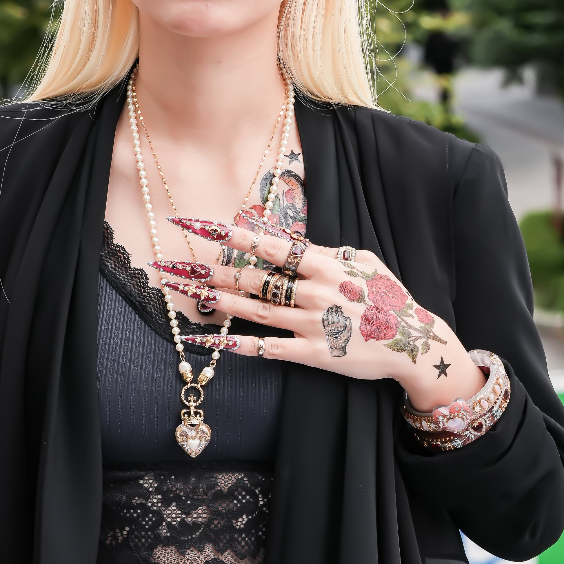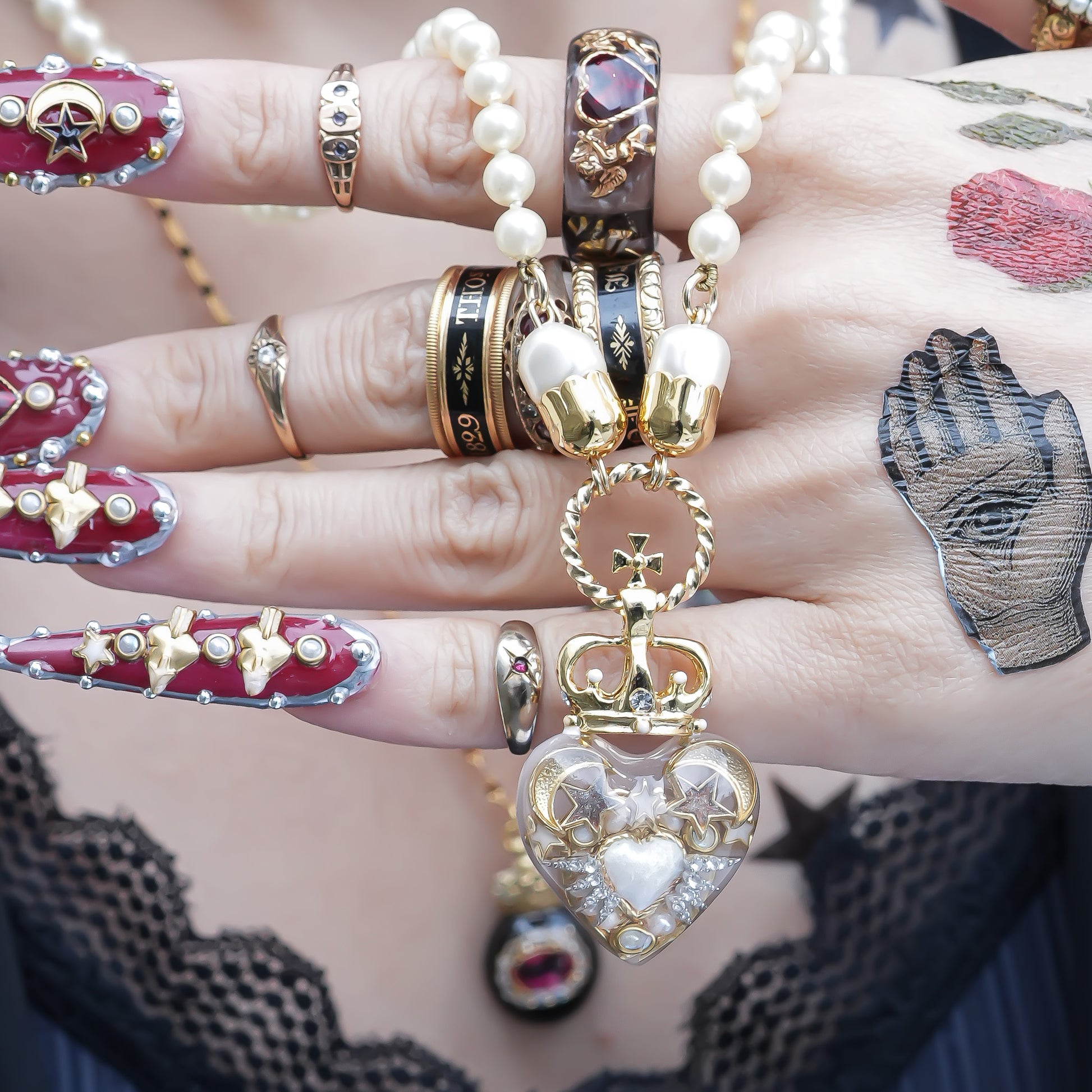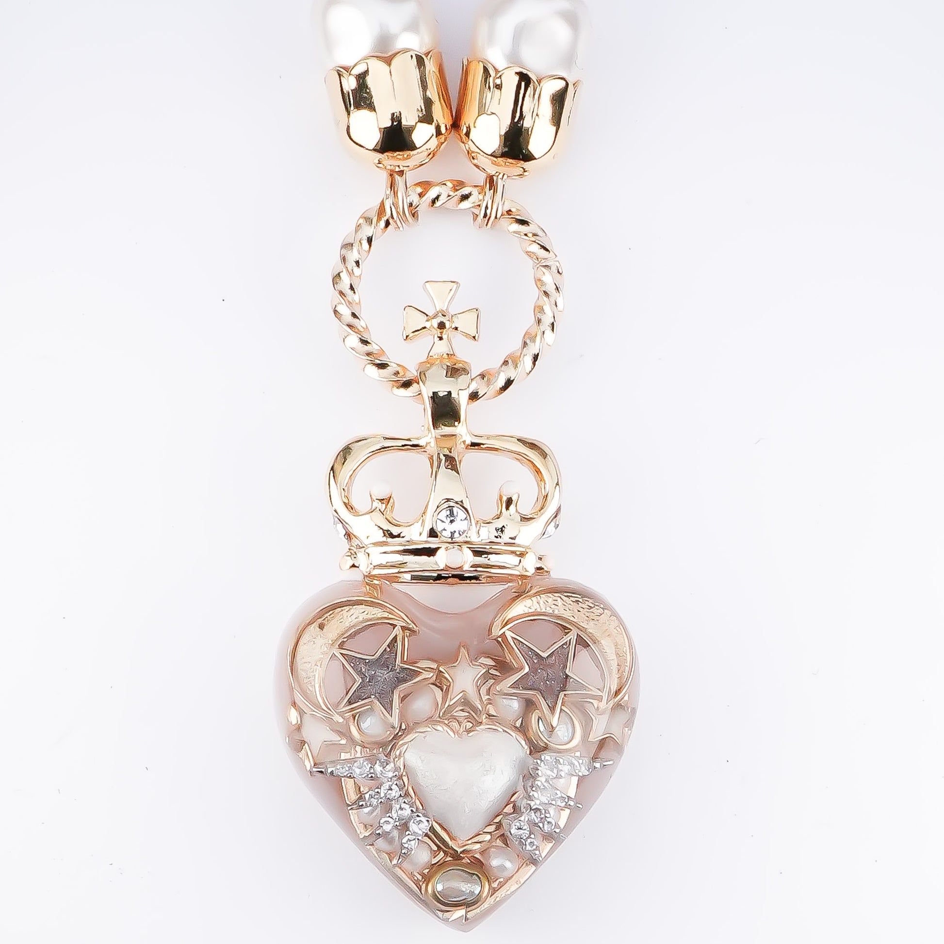 Crown Heart Majolica Pearl Necklace - Smoky White1