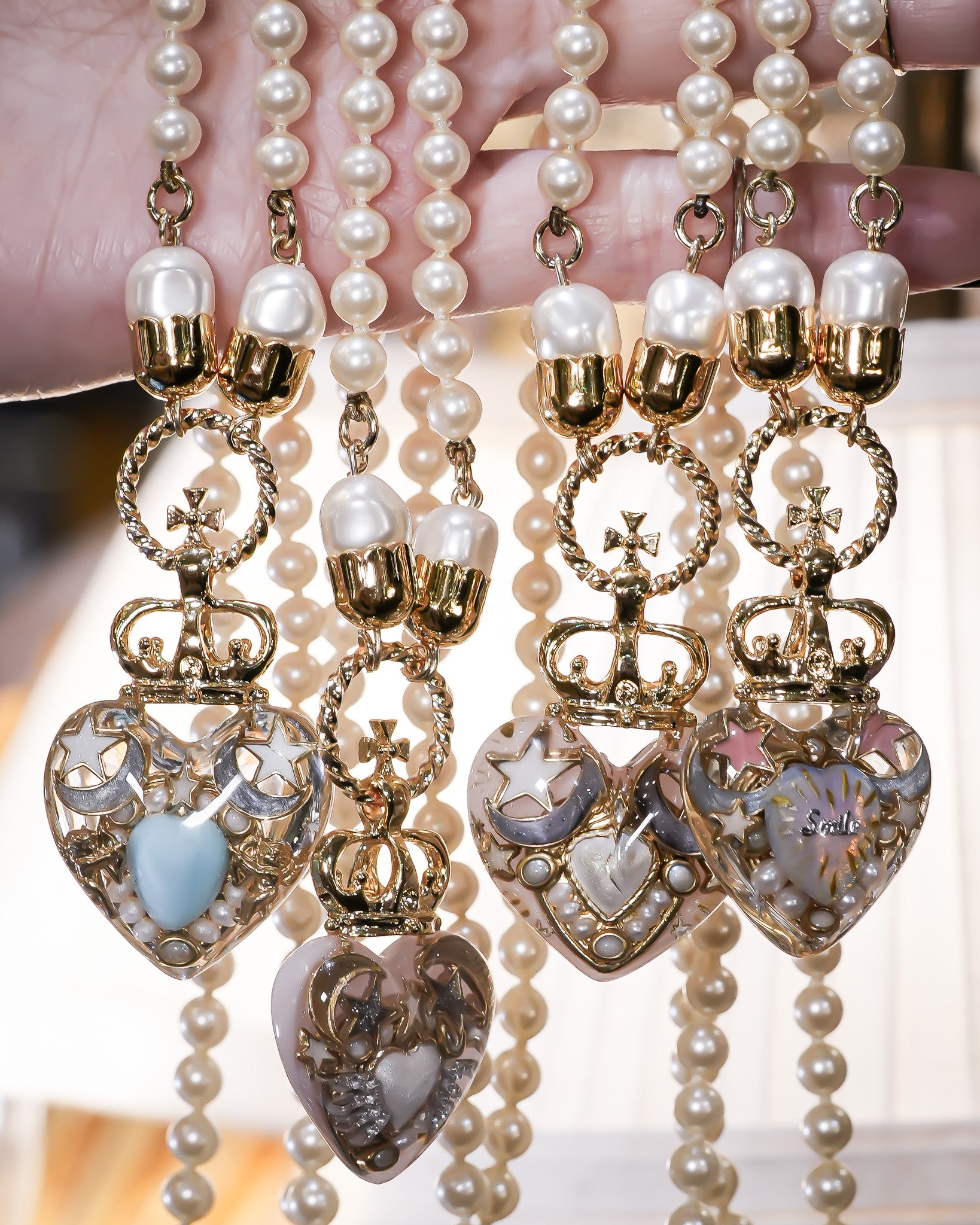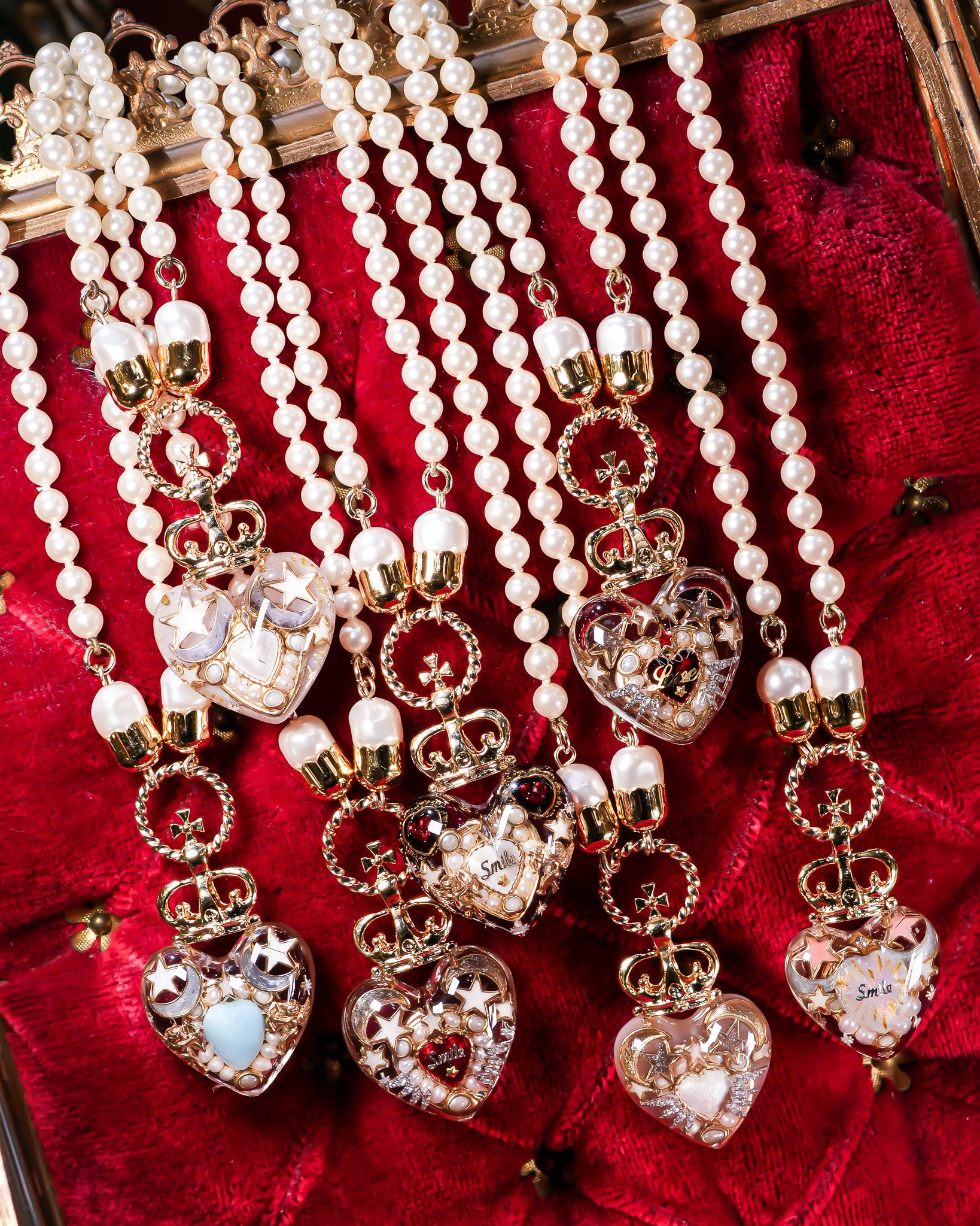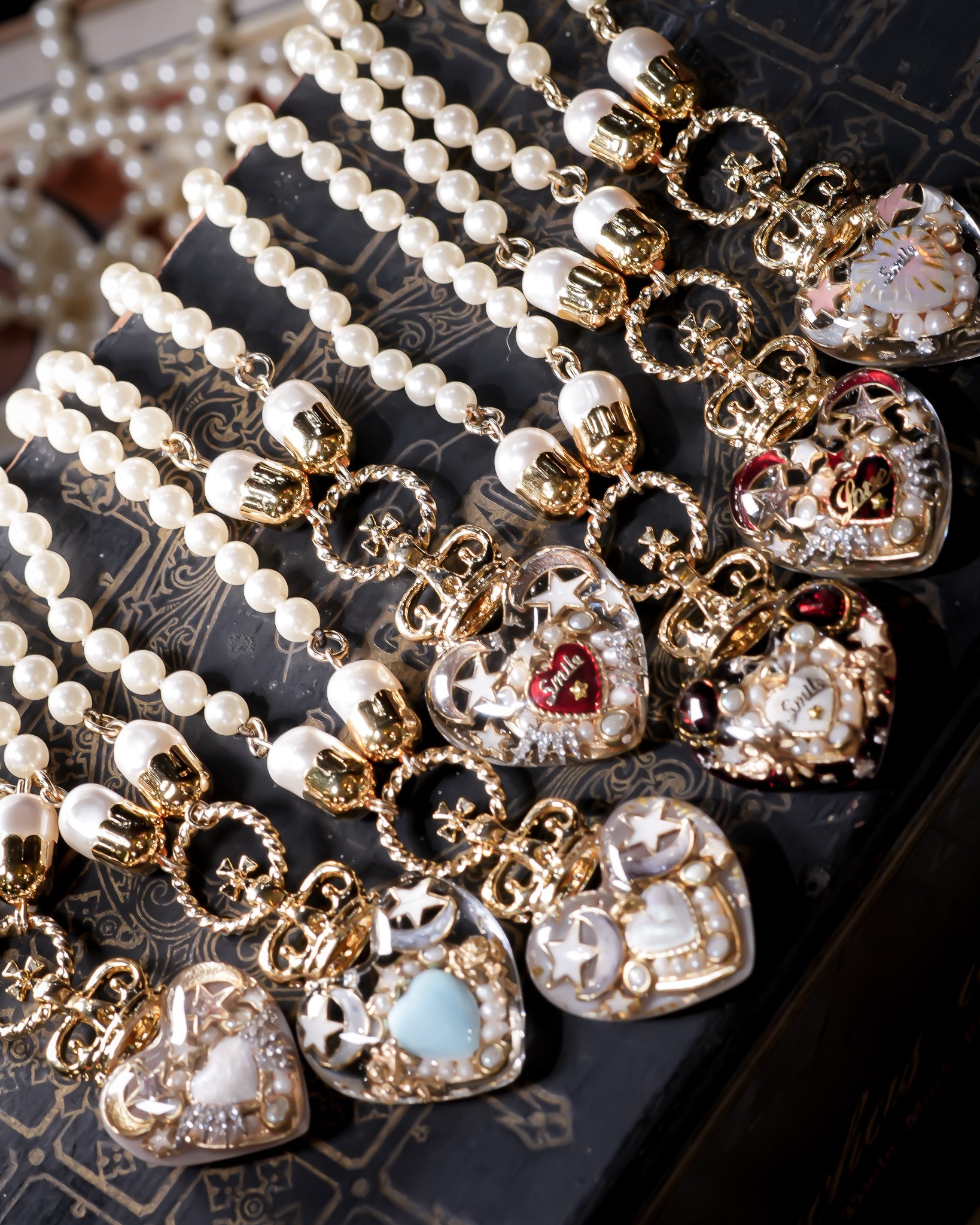 Crown Heart Majolica Pearl Necklace - Turquoise