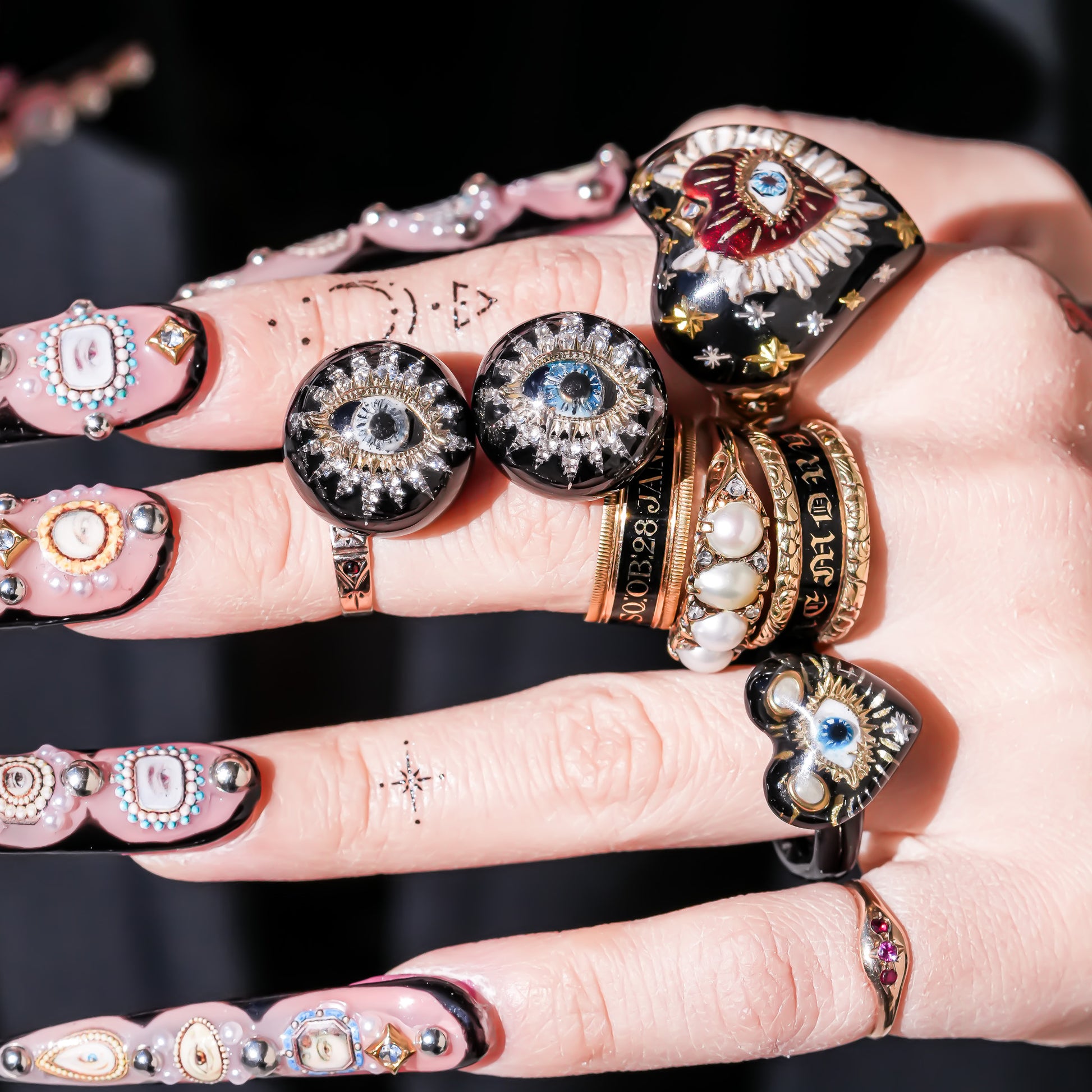 Guardian starburst eye earrings - black × gold