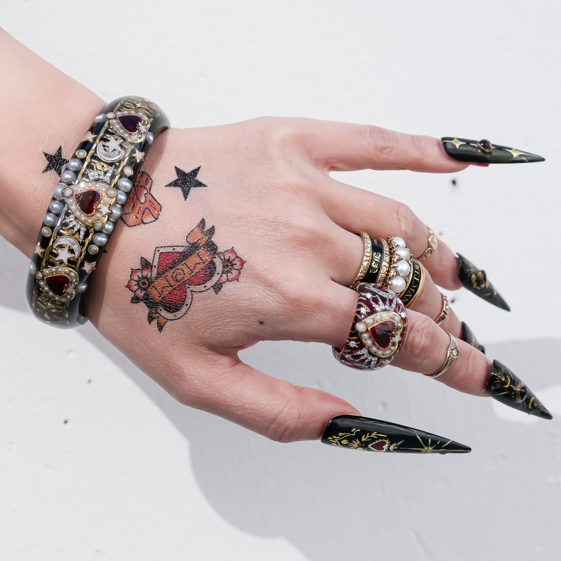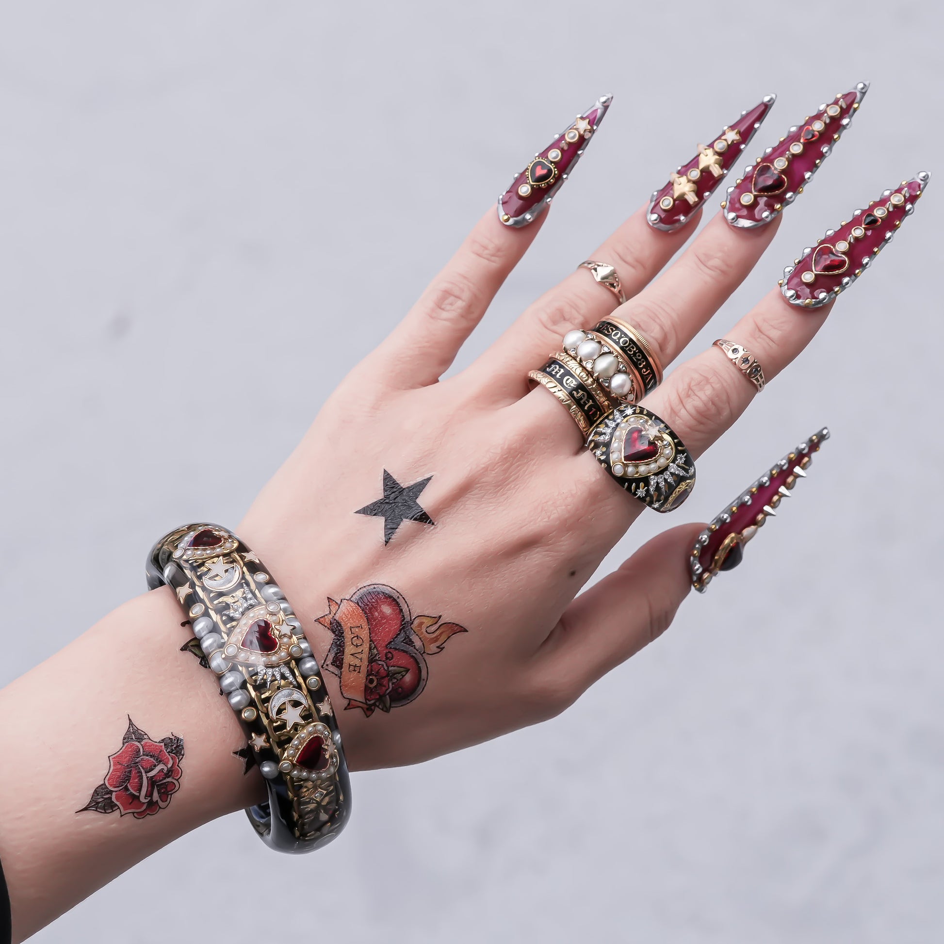 手元を一瞬で特別にする、ダークブルー × レッドハートのコントラスト。