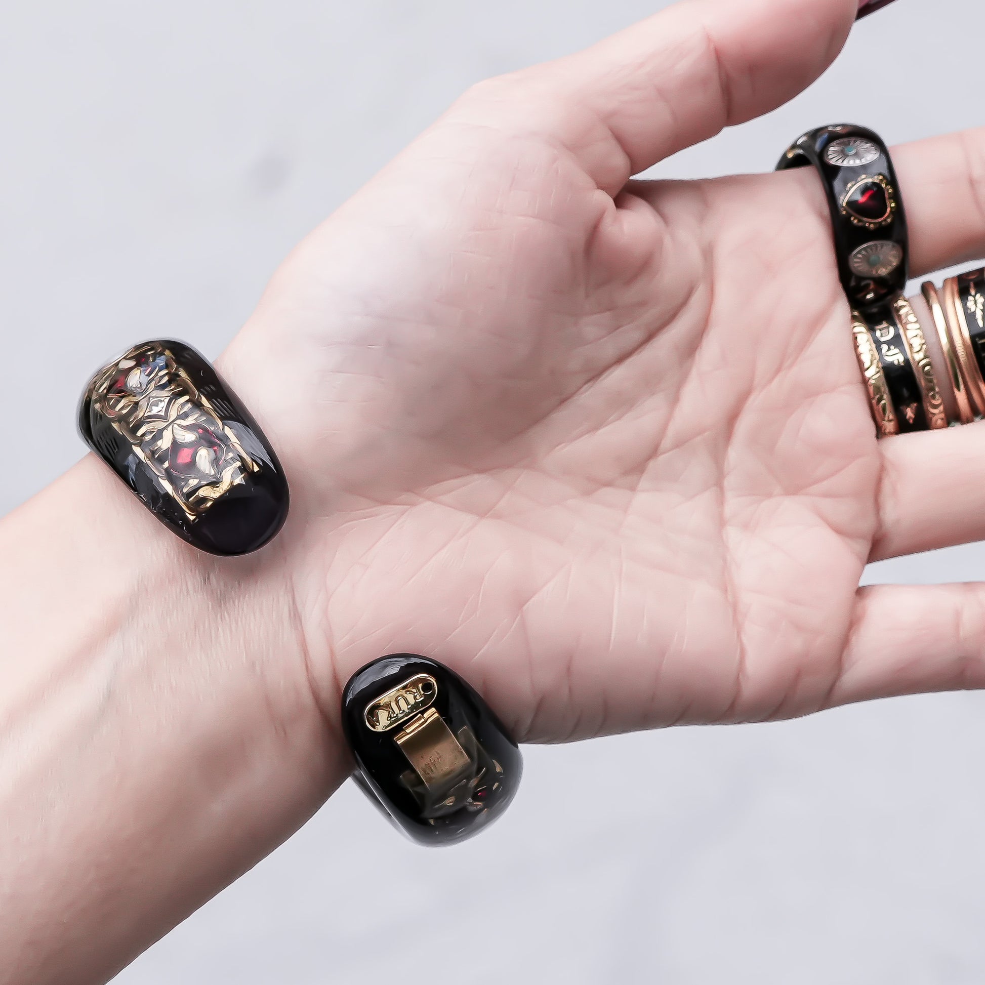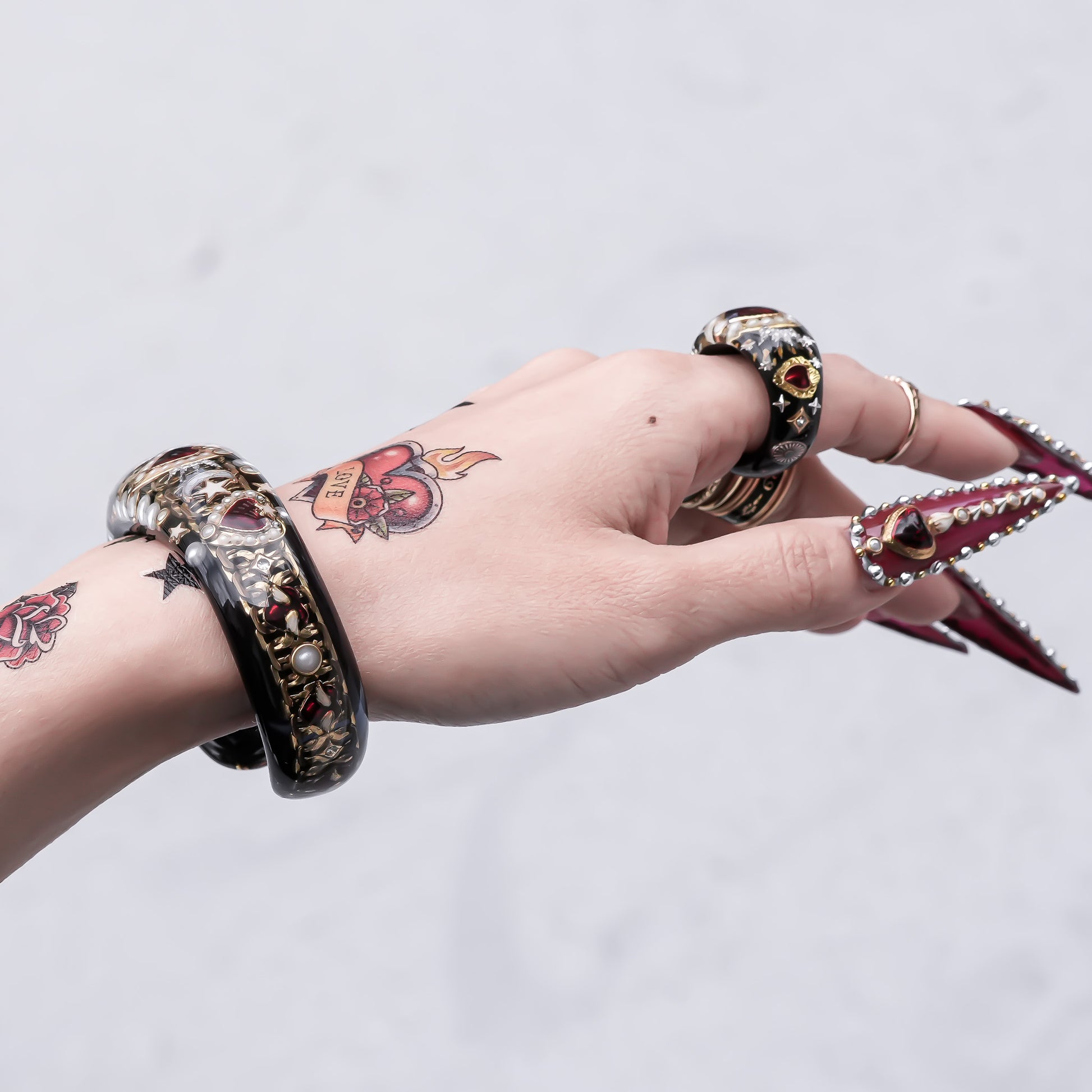アンティークチェーンとヴィンテージハートが並ぶラグジュアリーなデザインで、