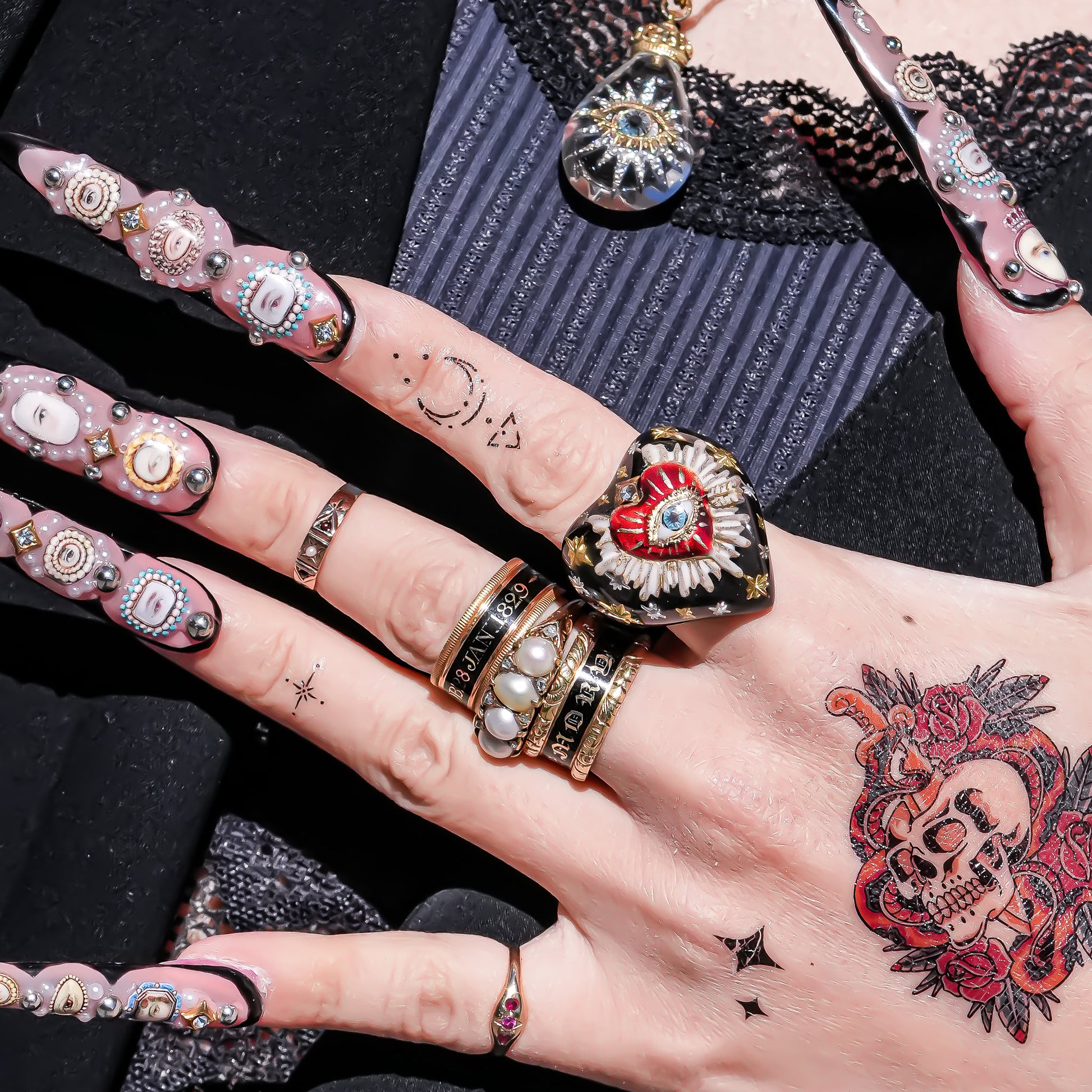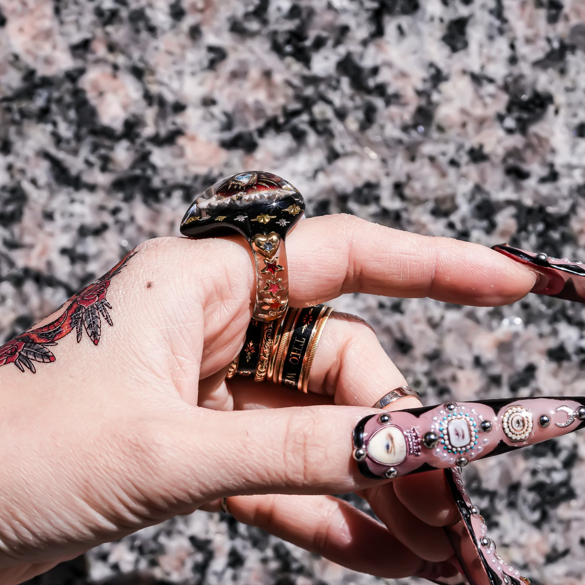 艶やかなブラックをベースに、中央にはブラックのハート。