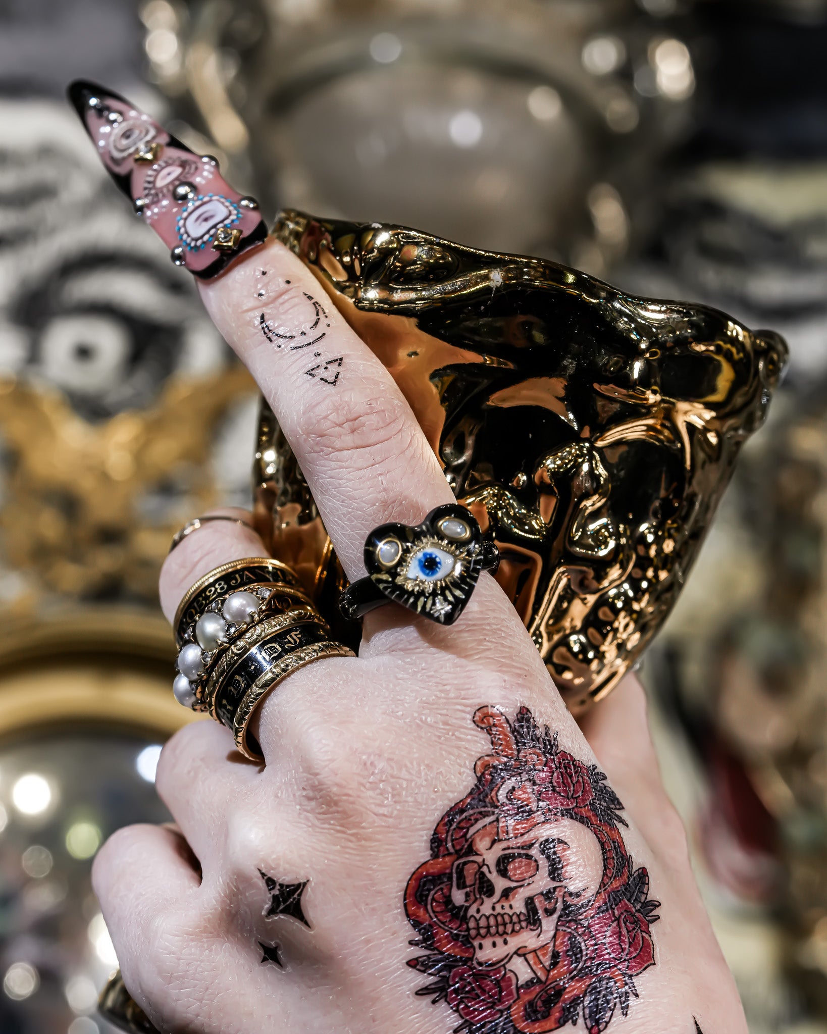 艶やかなブラックハートに神秘的な“目”のモチーフ。
