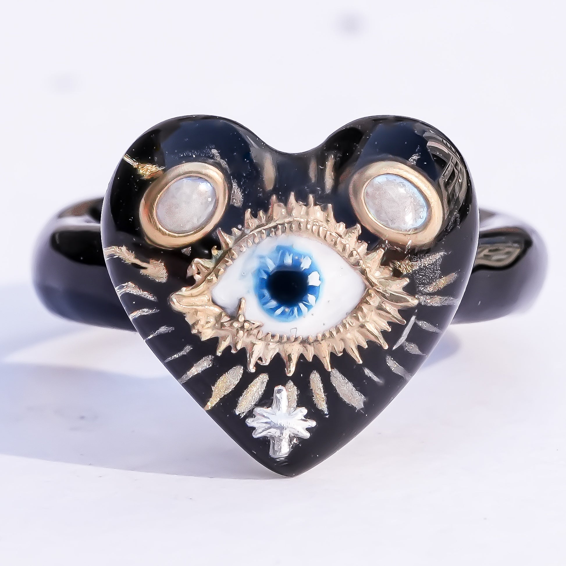 Sacred eye heart ring - black × pearl / #11