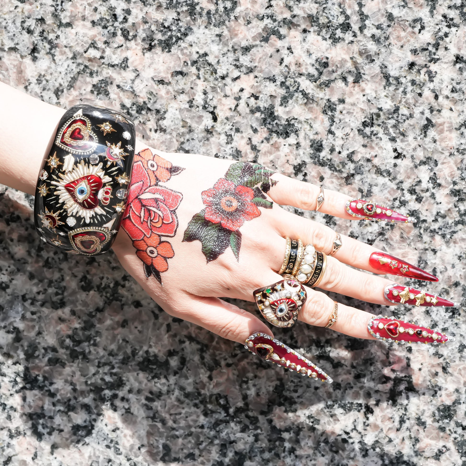 愛と情熱を高め、ネガティブな流れを遠ざけるお守りモチーフです。