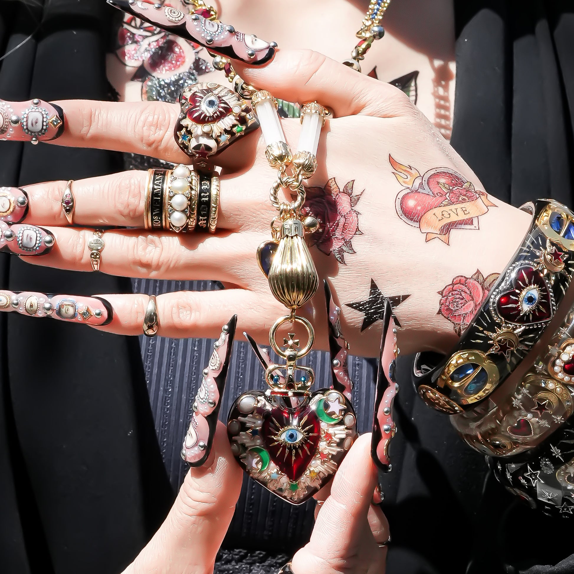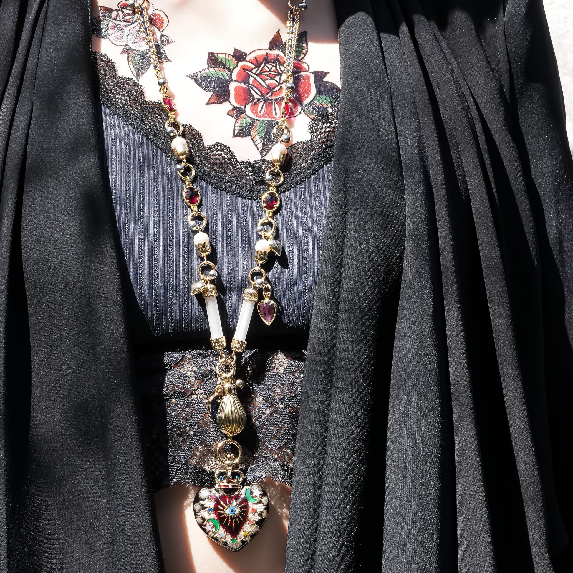 Sacred Heart Eye Necklace - Black × Red × Rainbow / Medium