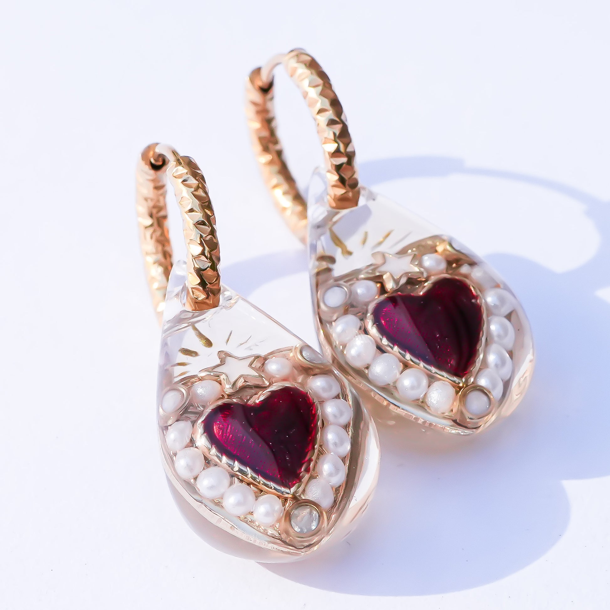 雫のようなフォルムに、ヴィンテージ感のあるレッドハートを閉じ込めた、ロマンティックなドロップピアス。
