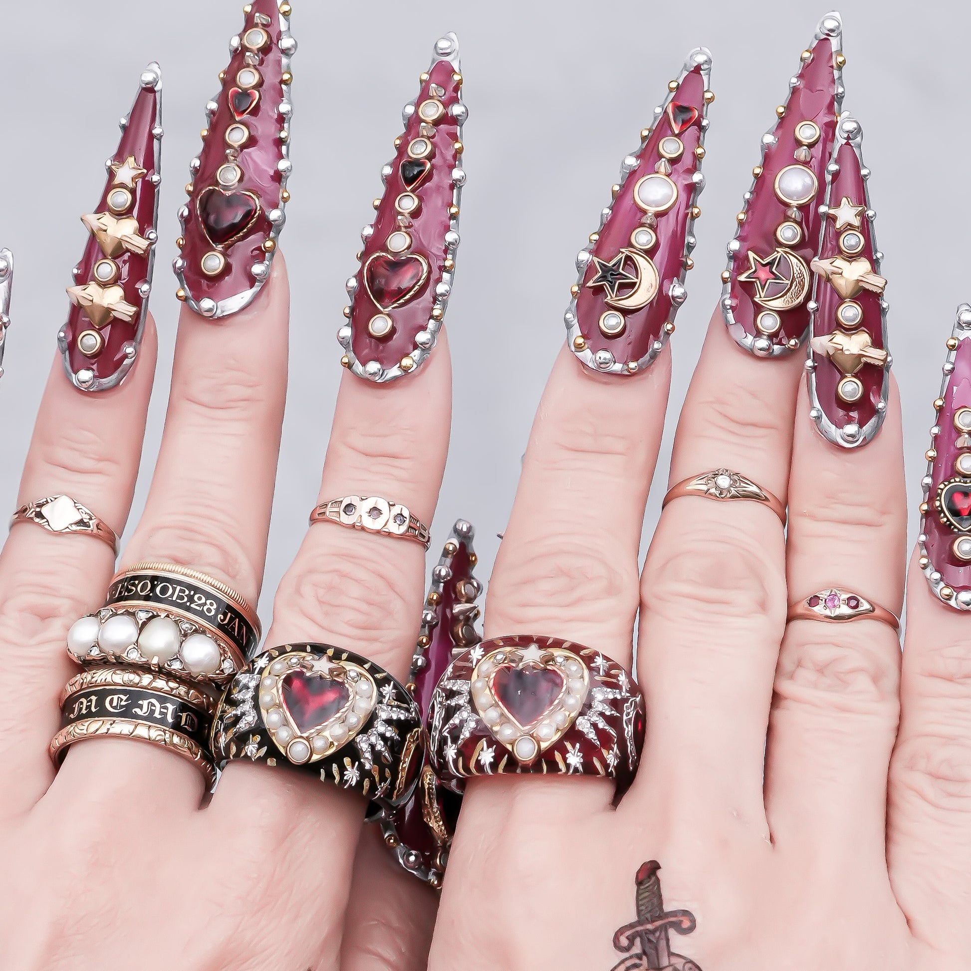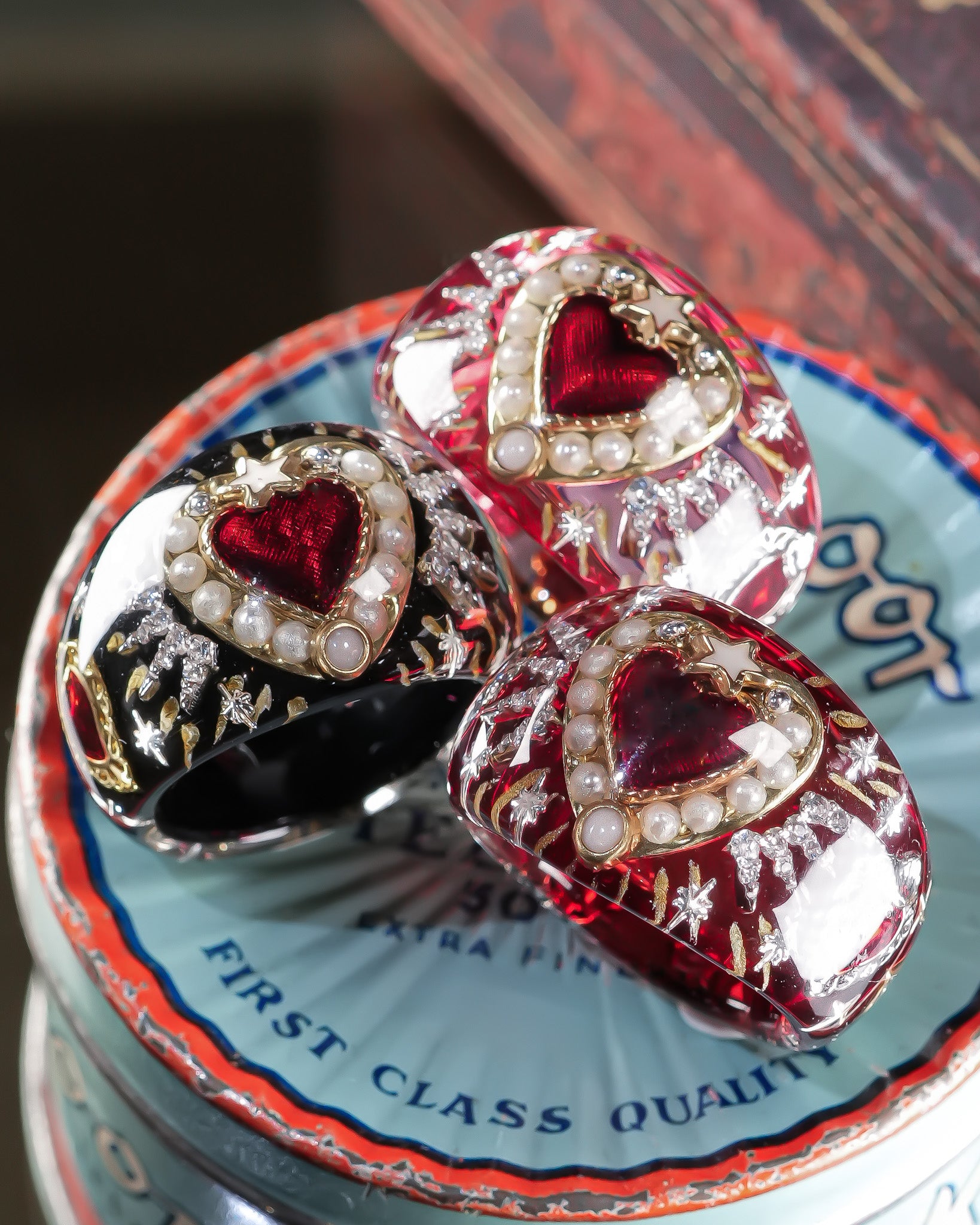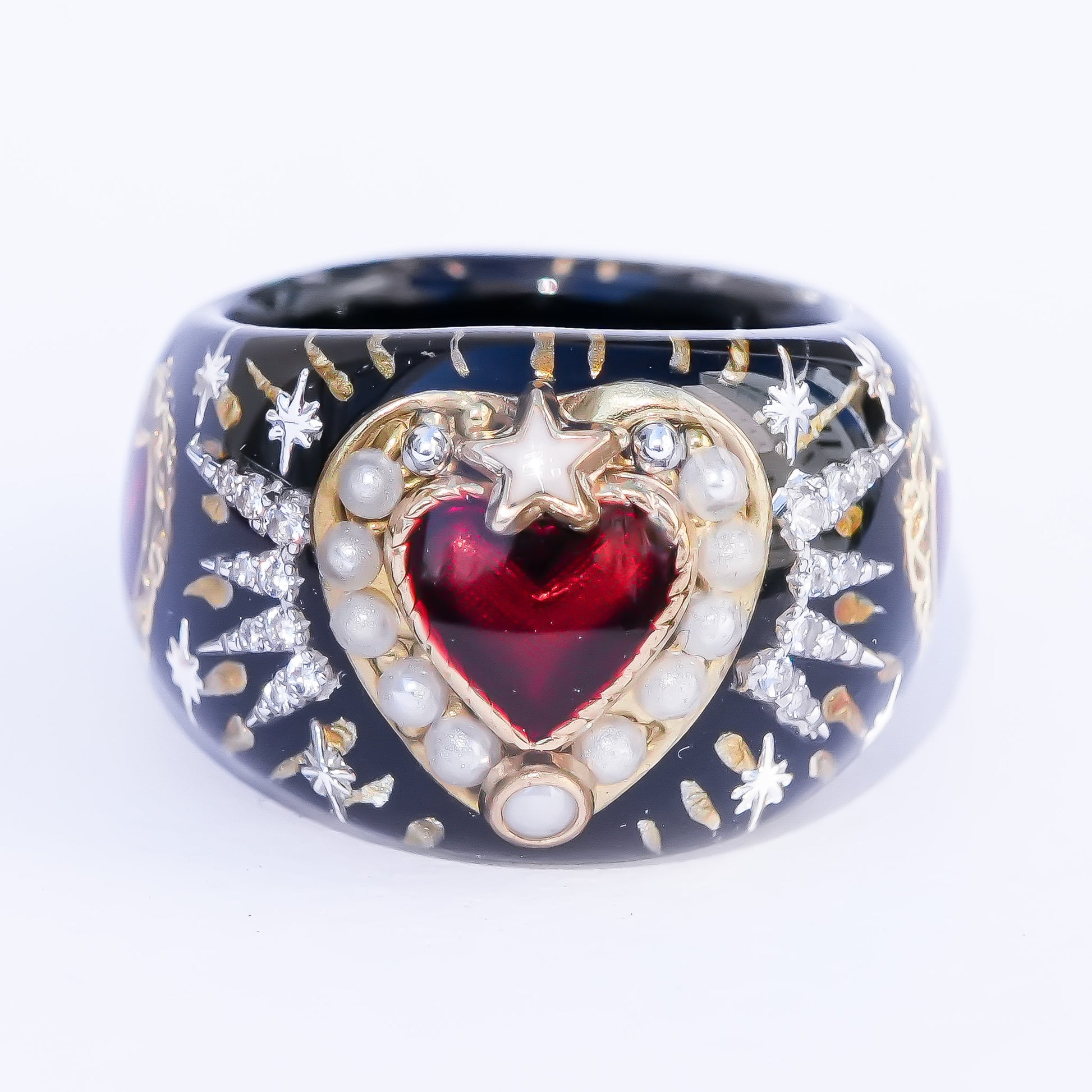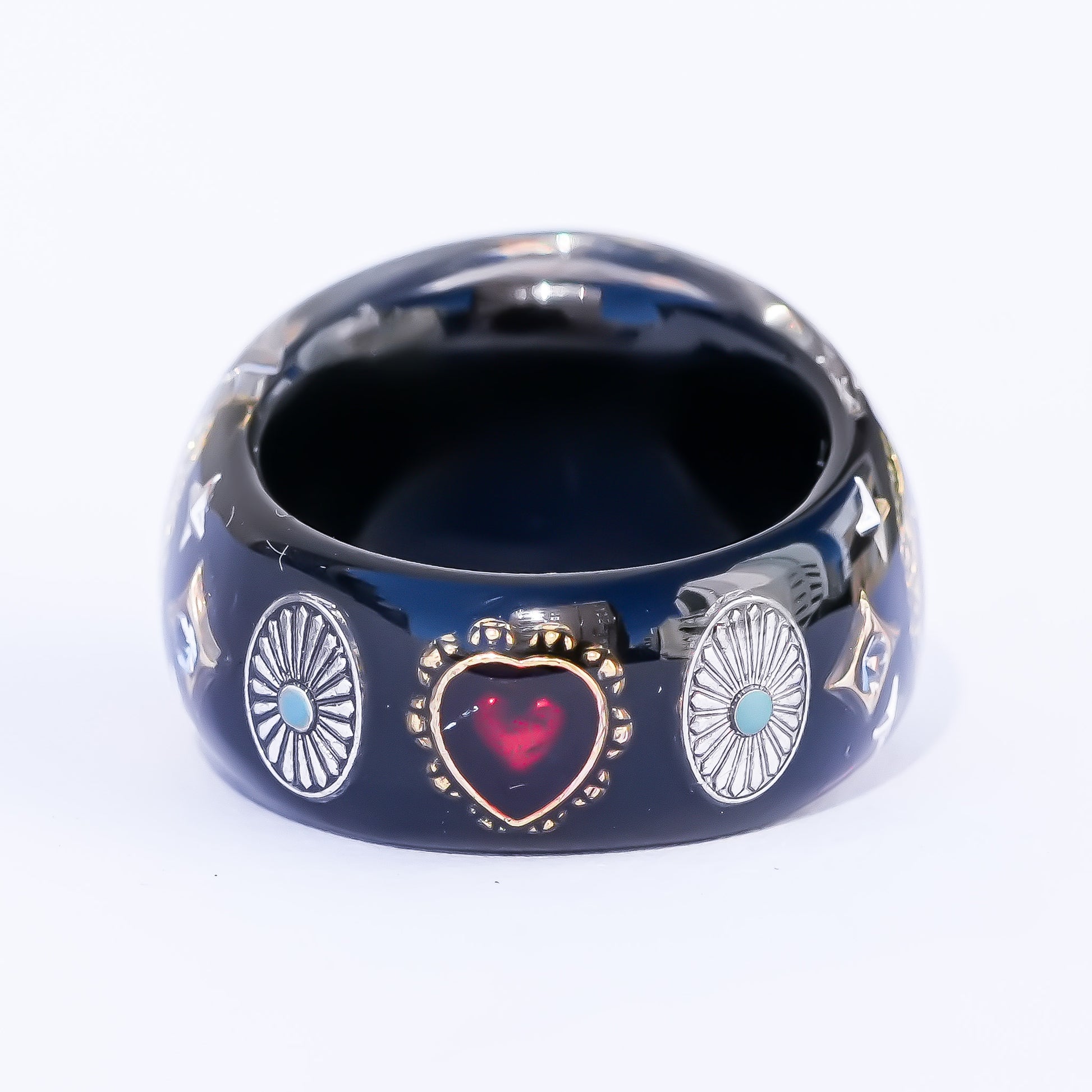 クールな黒に深い赤のハートが映える、まさに“魅惑のミッドナイトリング”。