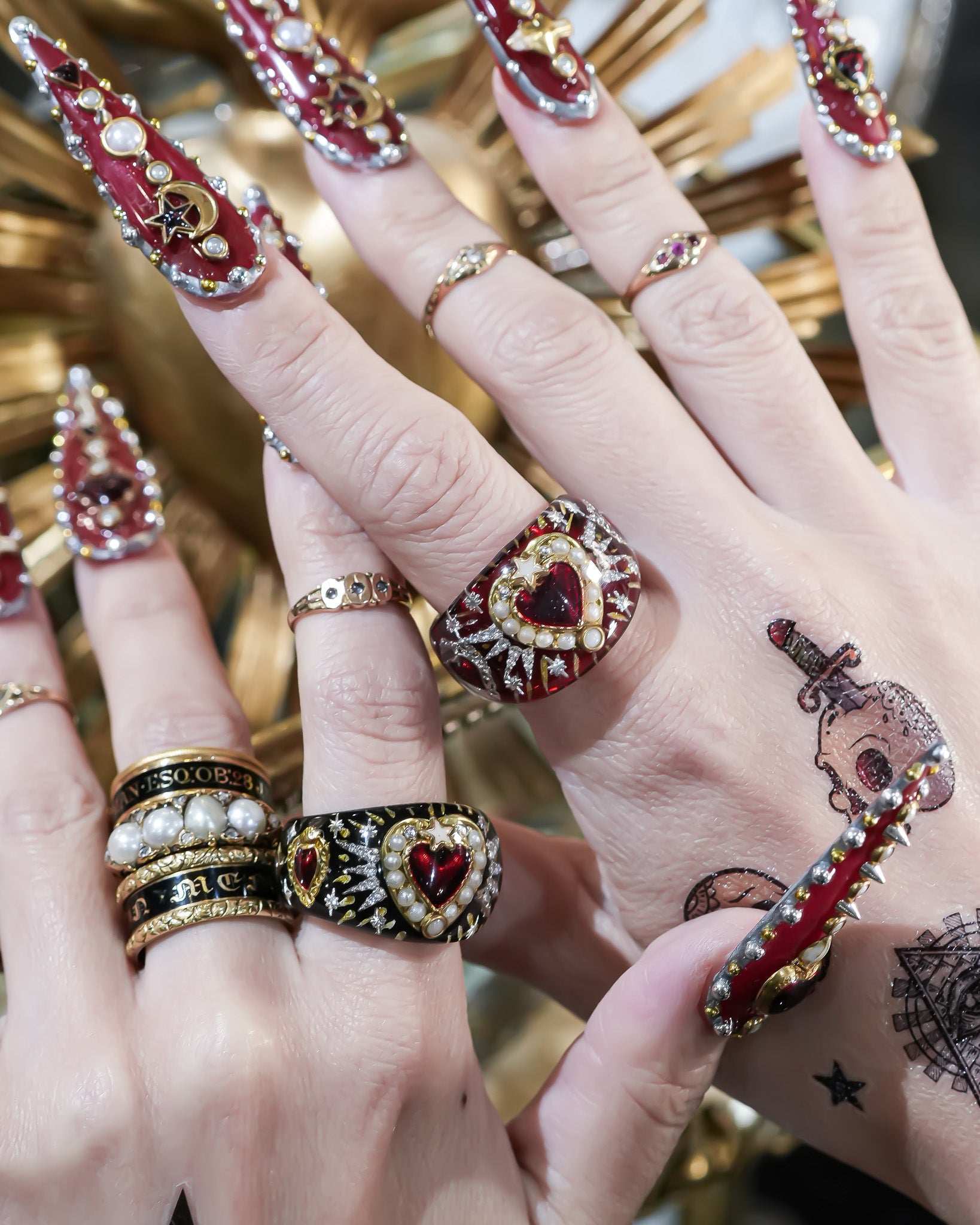 周りには星のきらめきが散りばめられ、指元に魔法とロマンを添えてくれます。