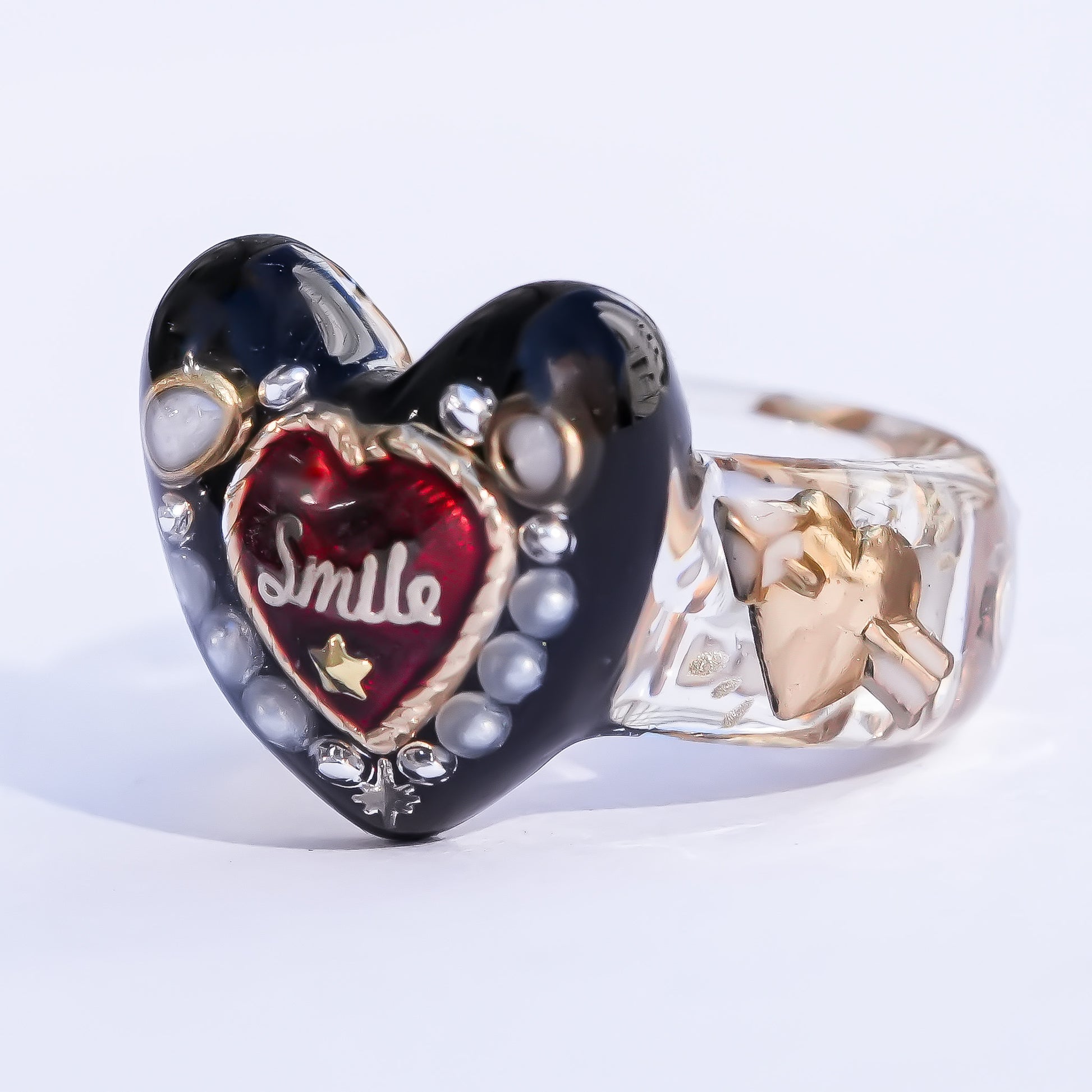 Sweet smile heart ring – black × red / #5