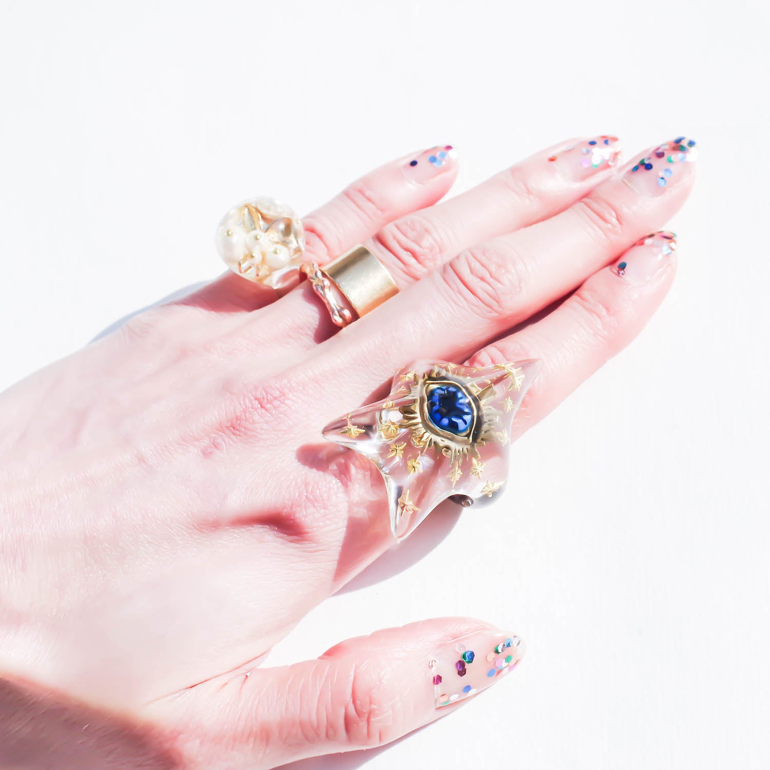 古来から魔よけのお守りとして親しまれ、悪いことを遠ざける縁起の良いものとして現代でも世界中で人気のある眼モチーフのリングです