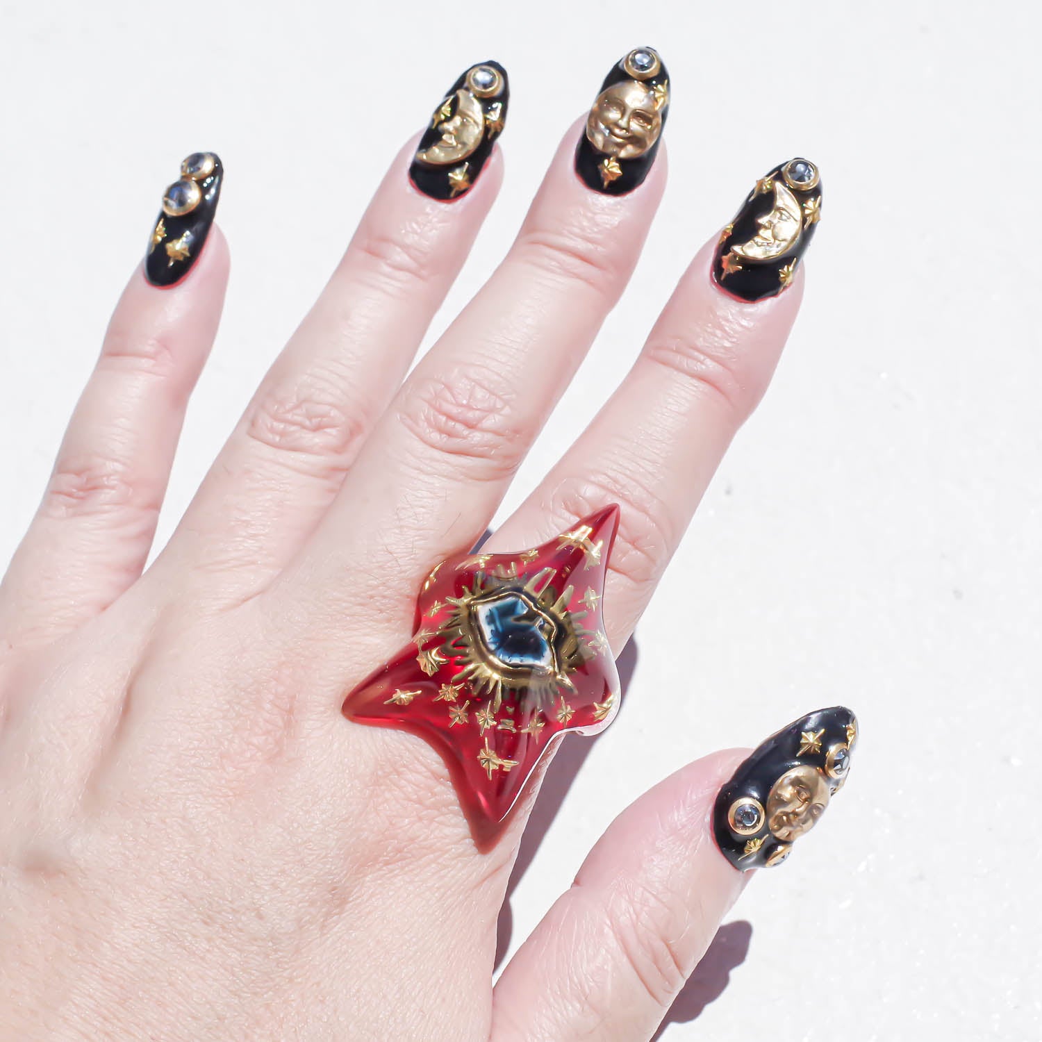 古来から魔よけのお守りとして親しまれ、悪いことを遠ざける縁起の良いものとして現代でも世界中で人気のある眼モチーフのリングです。