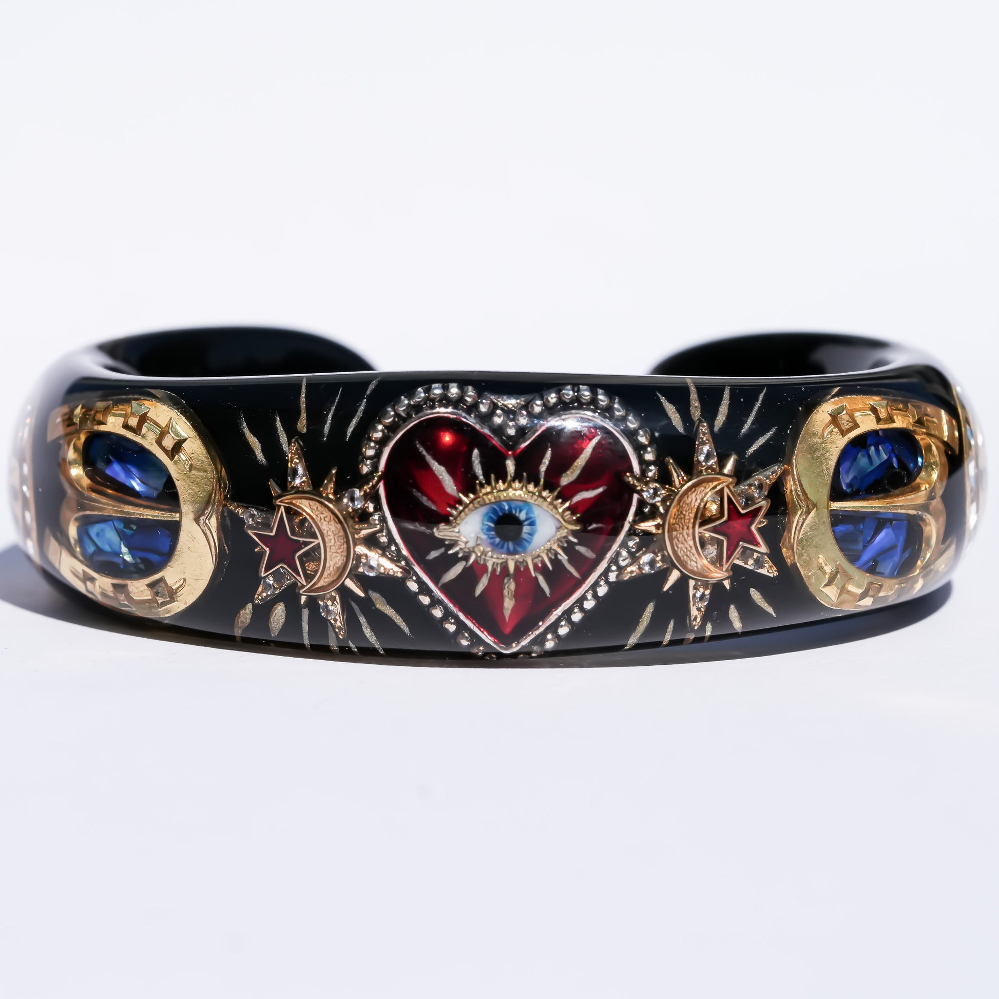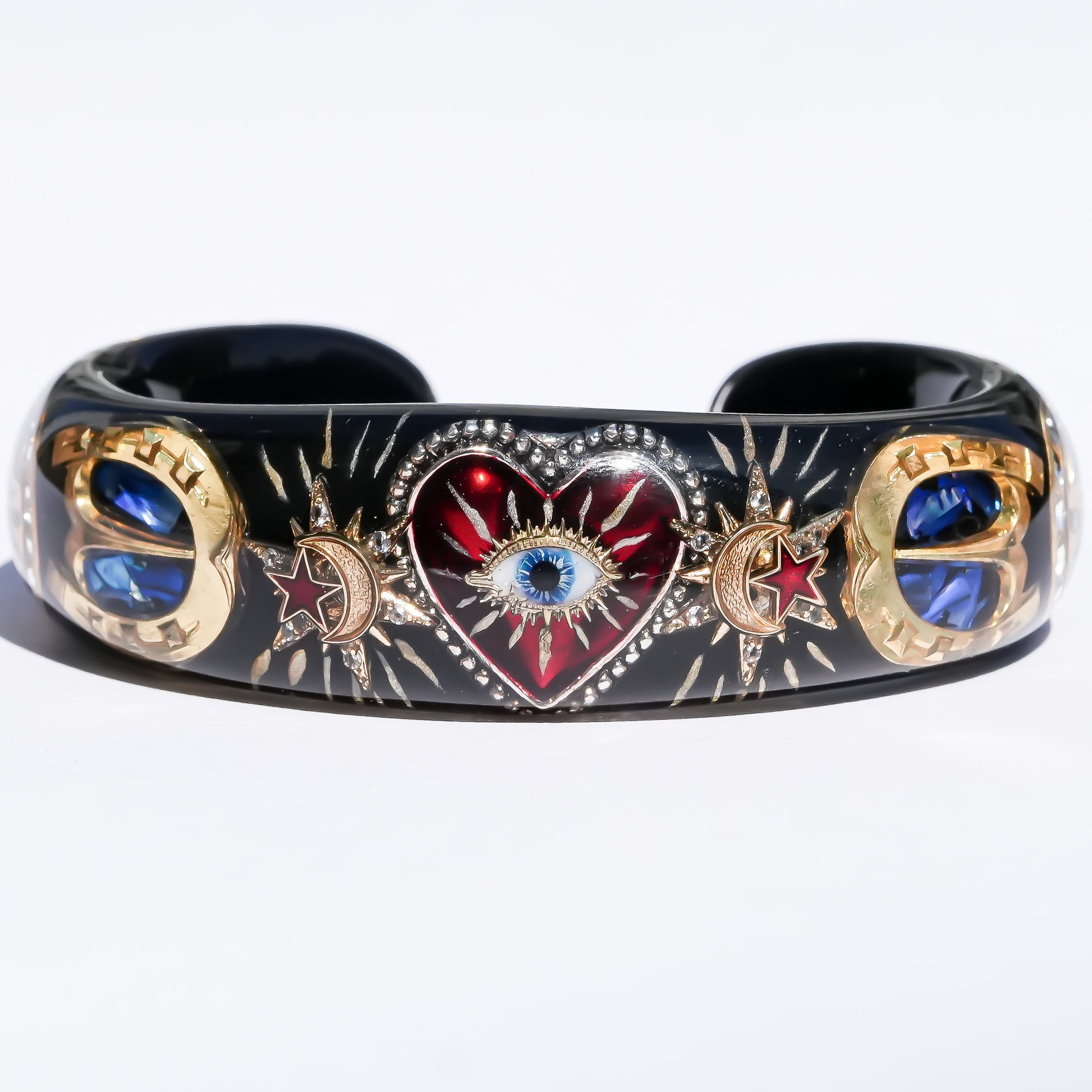 Heart of destiny bracelet with eye & horseshoe – Black×Red