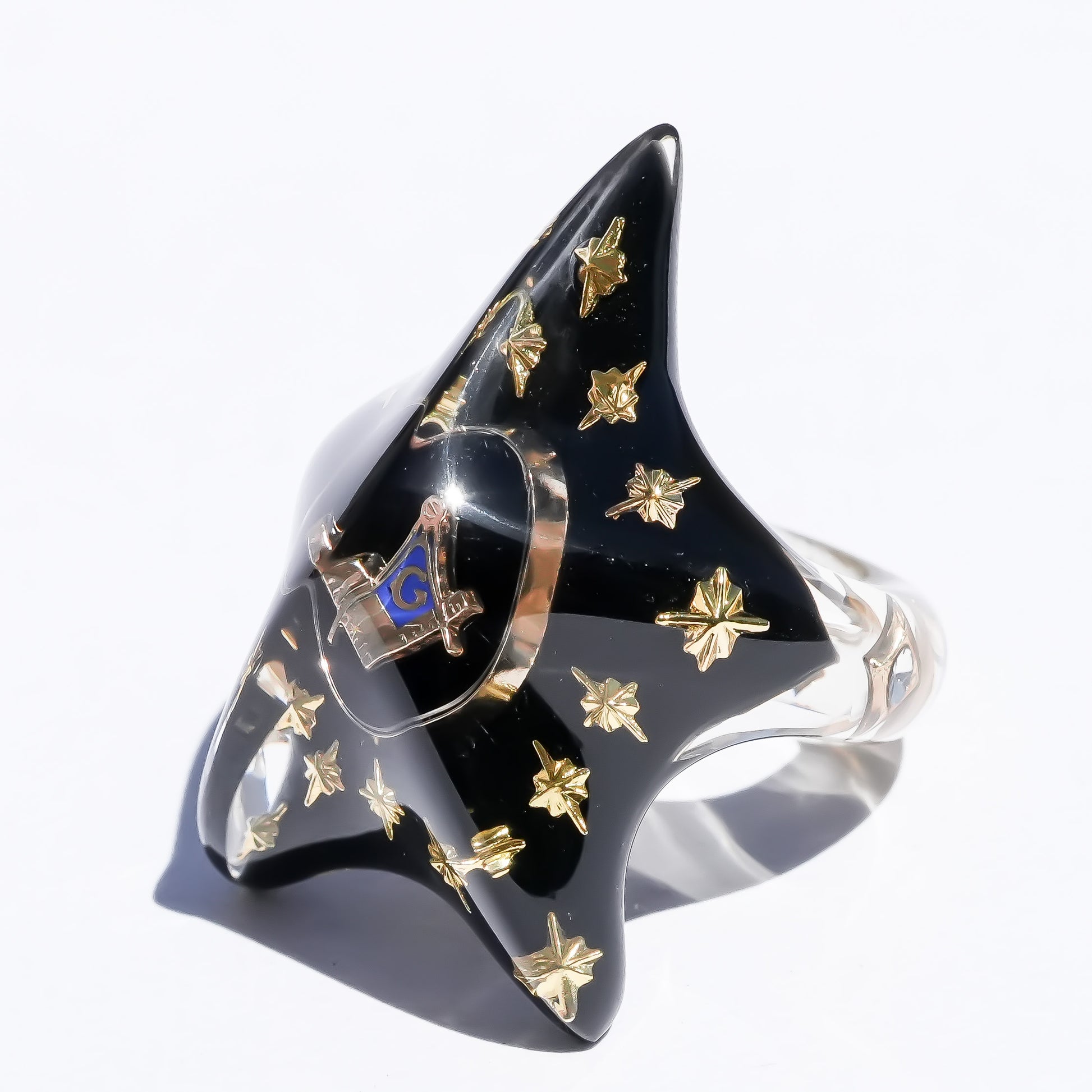 アメリカのアンティークショーで買い付けてきたフリーメイソンのブローチが入ったリングです。