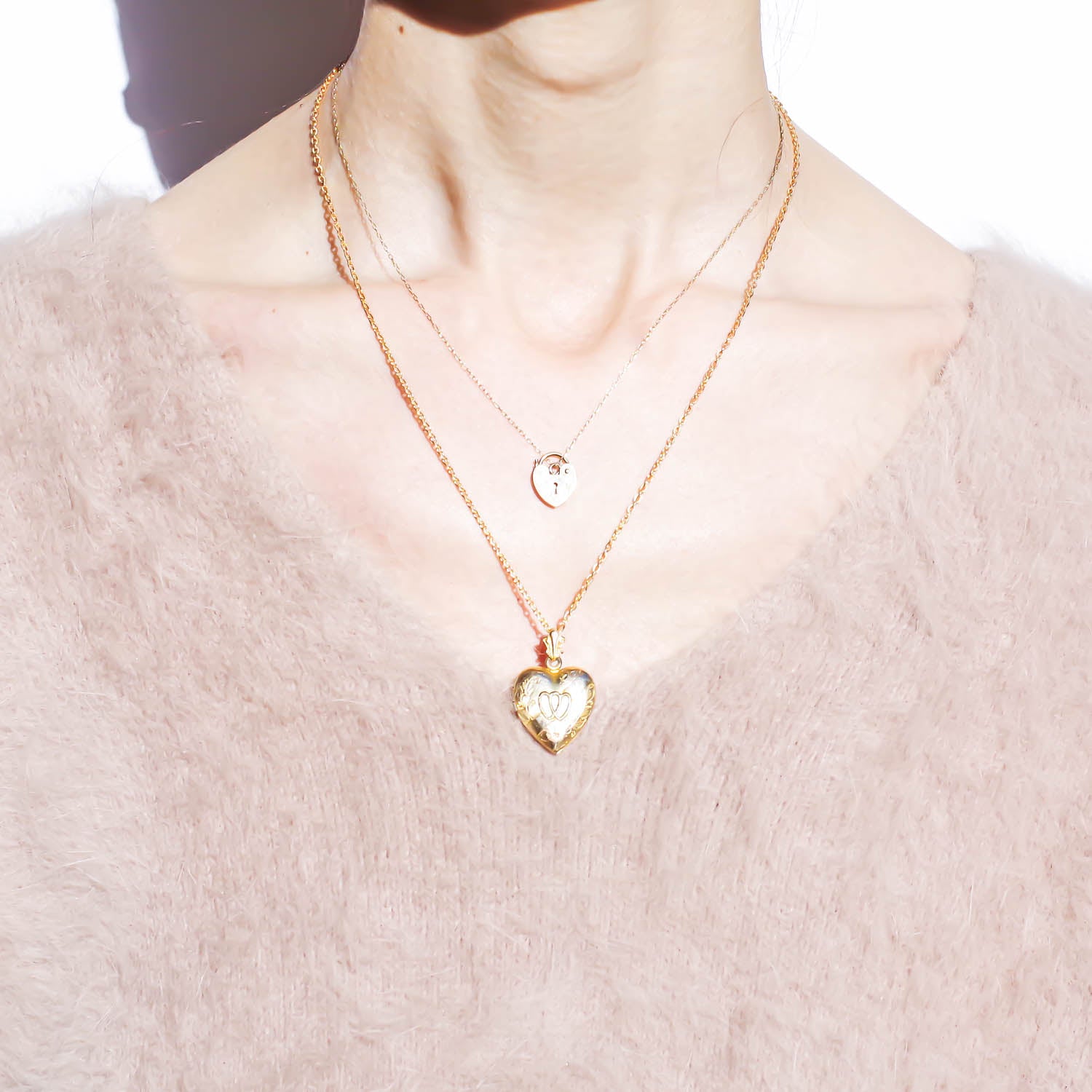 HEART LOCKET NECKLACE / DOUBLE HEART3 / 14KGF