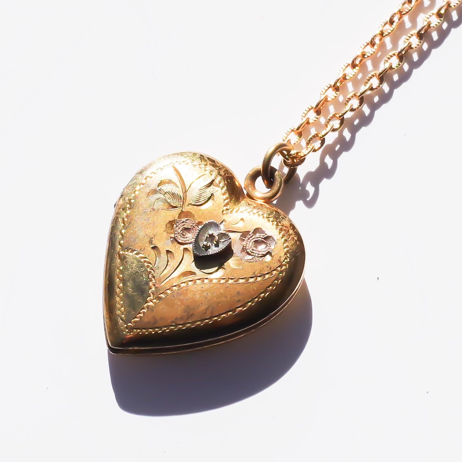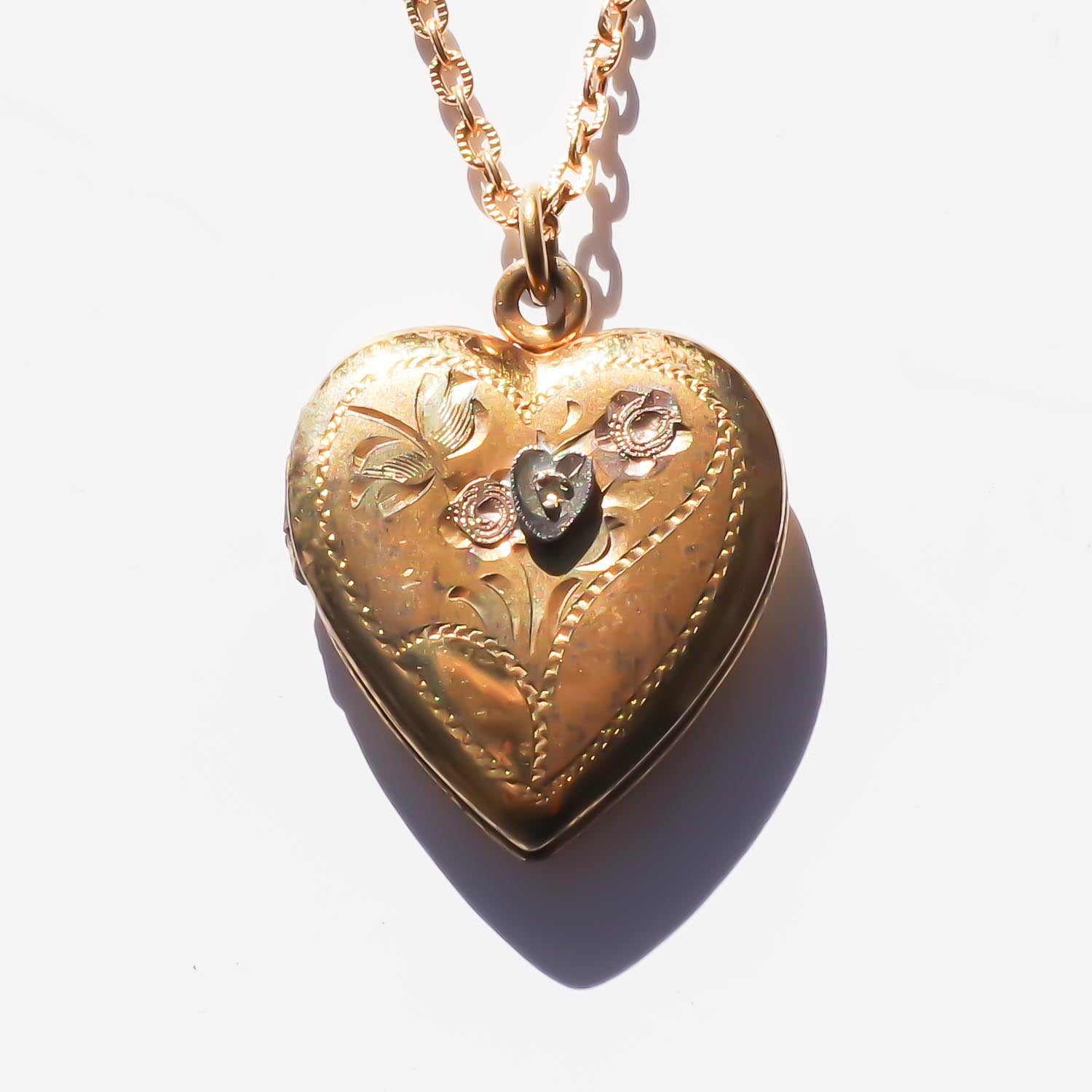 HEART LOCKET NECKLACE / HEART FLOWER / 14KGF