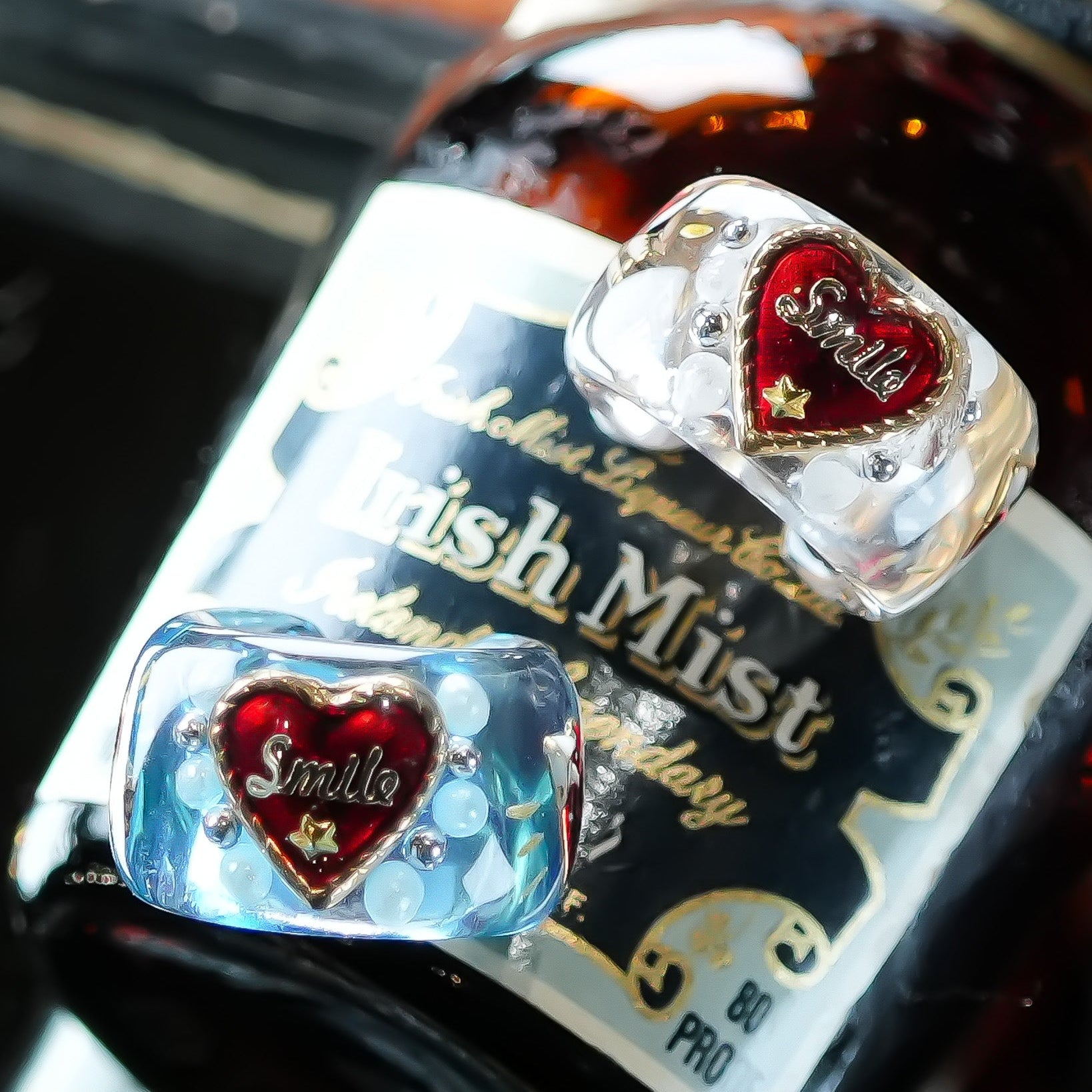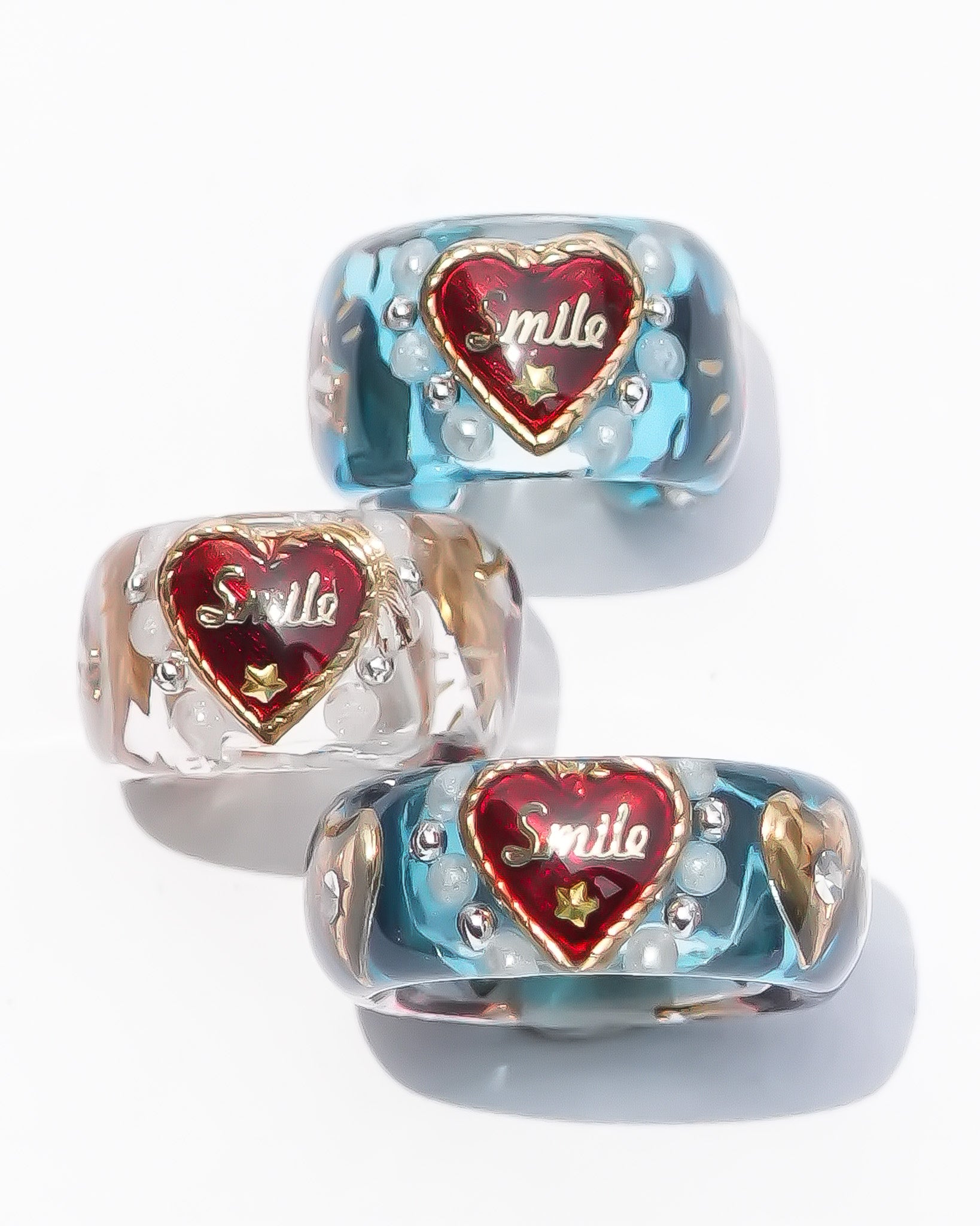 燃えるような赤色のハートに「Smile」のメッセージ。