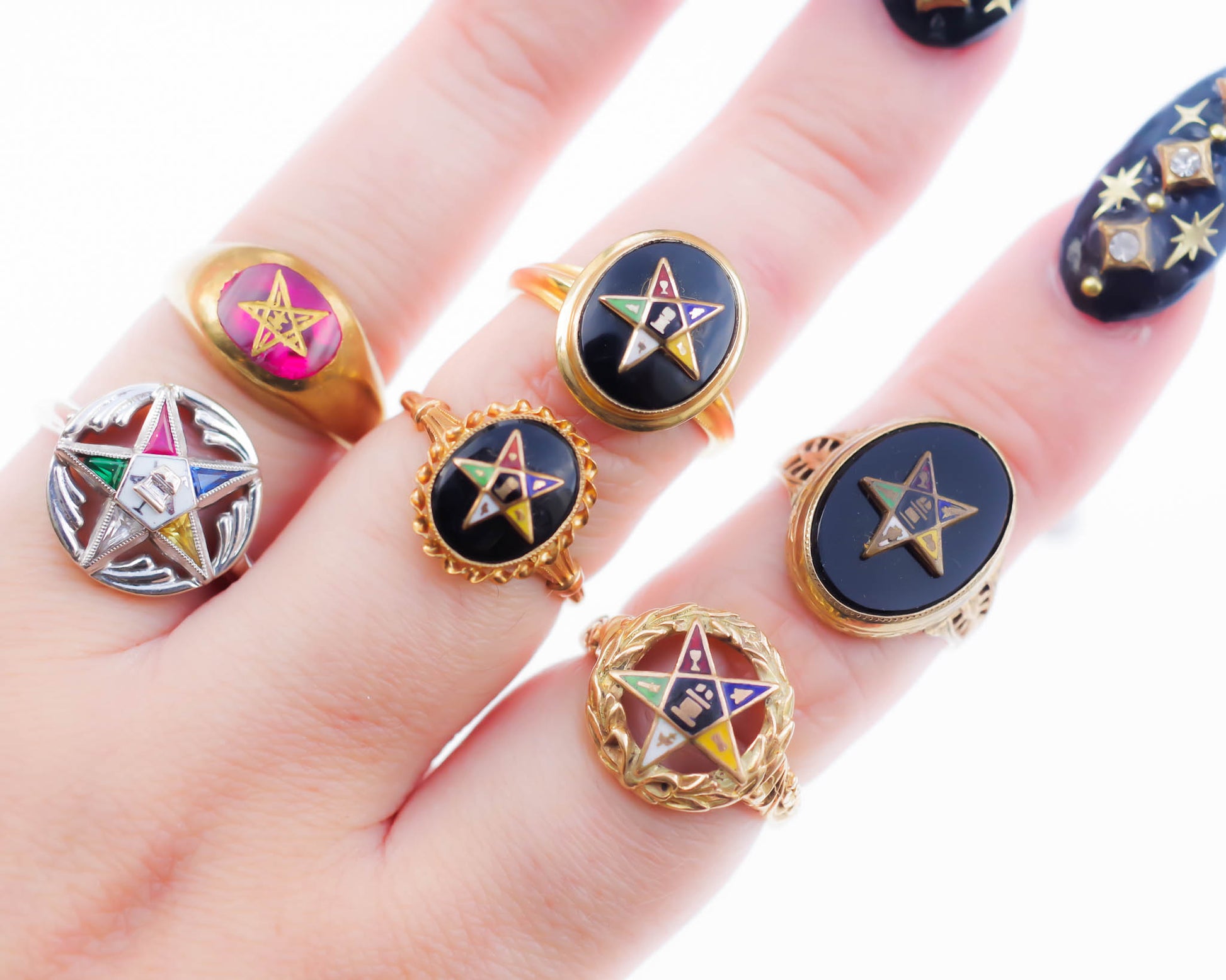 アメリカで買い付けて来たヴィンテージのフリーメイソン・イースタンスターの逆五芒星のリングです。